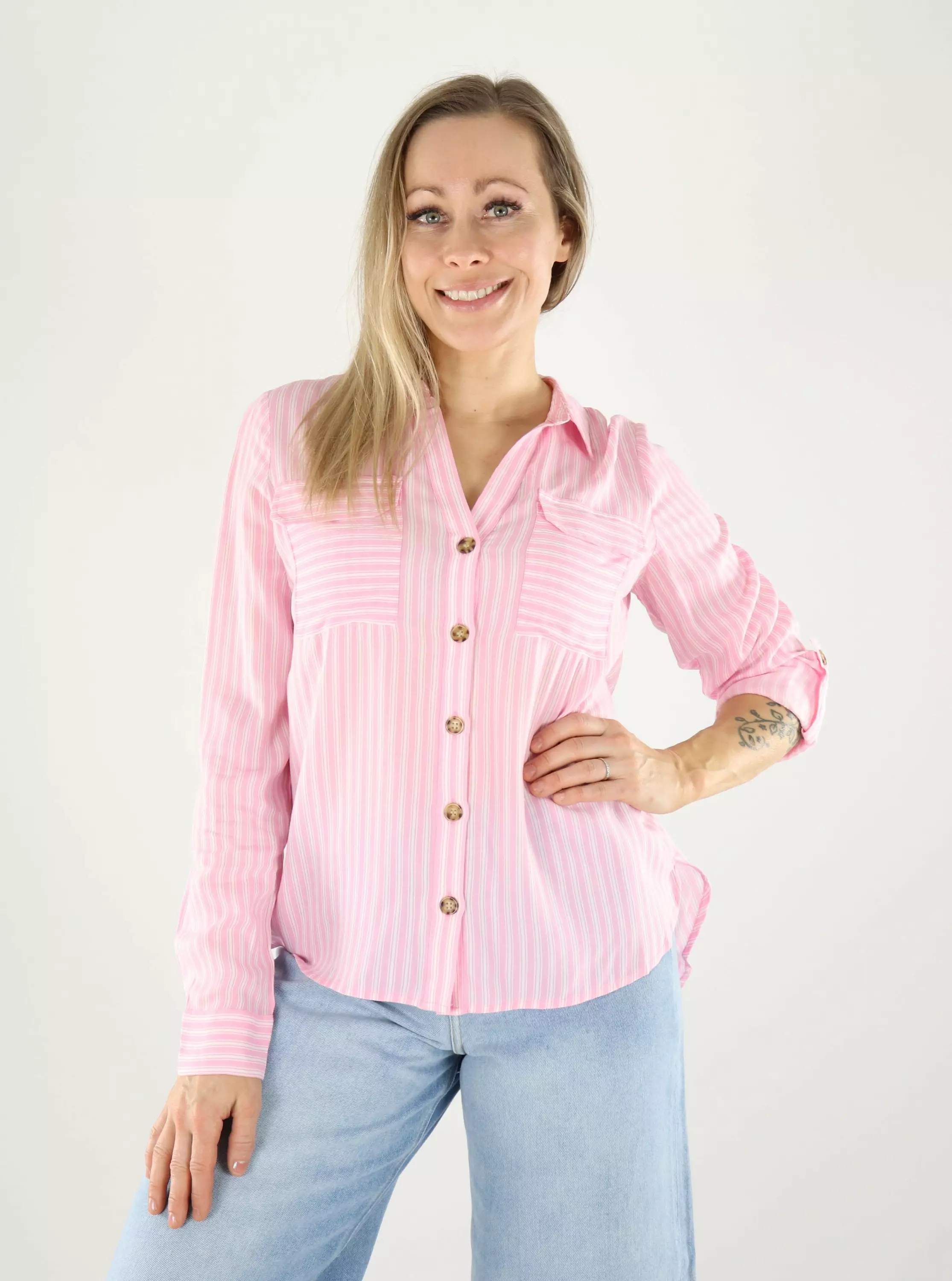 Vero Modan raidallinen kauluspaita tuo raikkautta arkipukeutumiseesi! Sen tyylikkäästi pyöristetty helma ja takaa pidempi leikkaus luovat tyylikkään siluetin. Käännettävät hihat tarjoavat monipuolisuutta ja mahdollisuuden muokata ilmettä helposti.