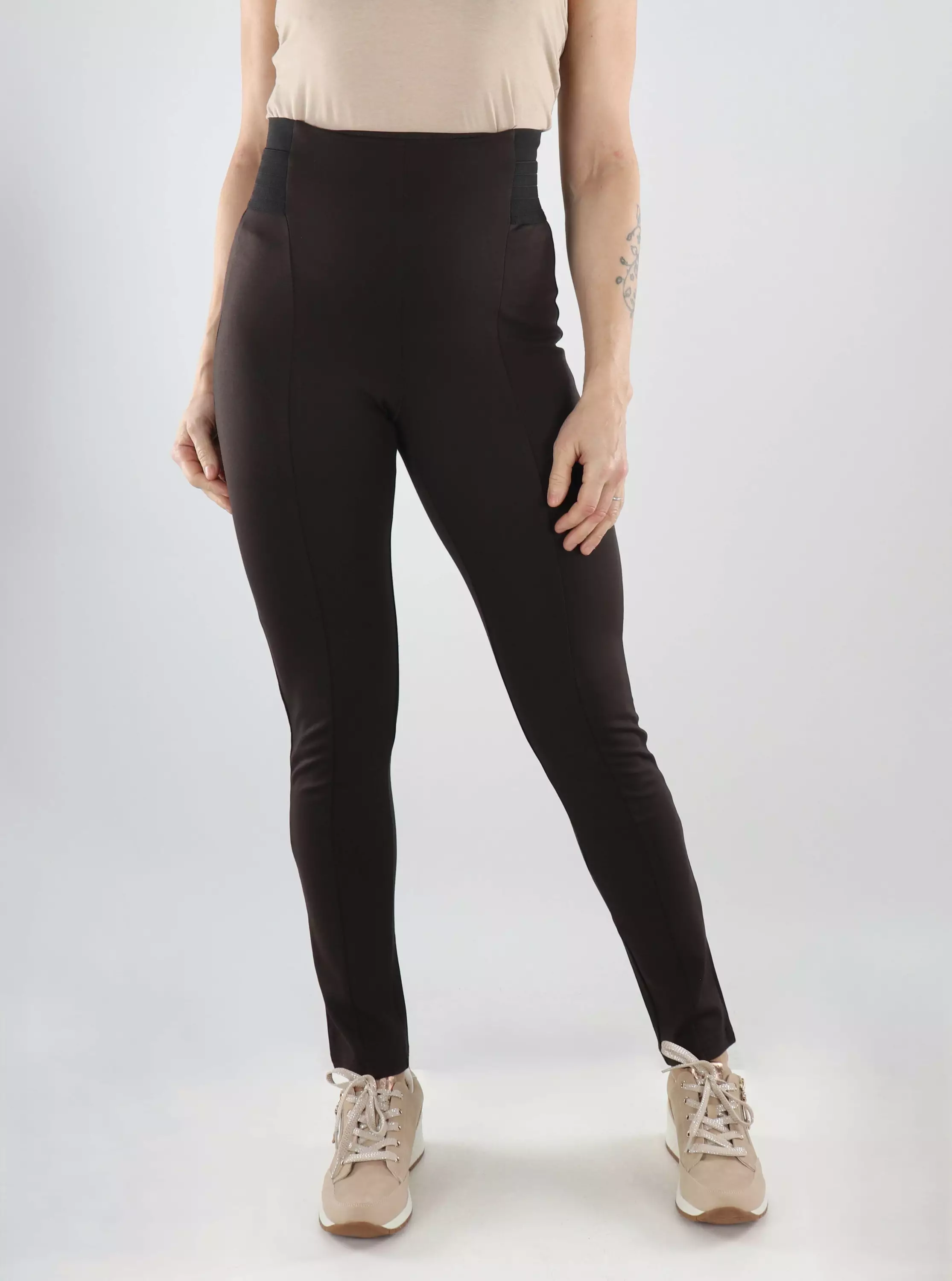 Paksummasta kankaasta valmistetut leggingsit, joissa korkea vyötärö leveällä kaistaleella tukee ja muotoilee kauniisti. Mukavat ja tyylikkäät joka päiväiseen käyttöön!