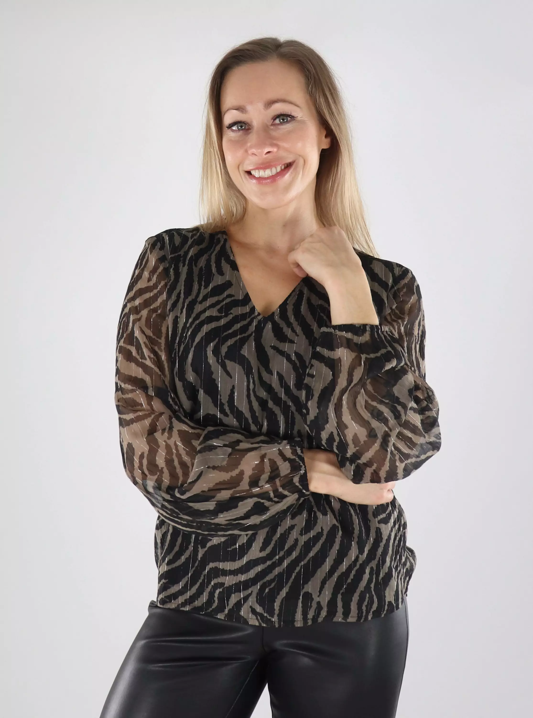 JDY Paita Cody v-neck black/walnut Tyylikäs ja kevyt paita hopeanhohtoisilla raidoilla. - Ohut, läpikuultava kangas - Miehustassa ohut vuorikangas - Hihansuilla kuminauharypytykset - V-pääntie... Read more