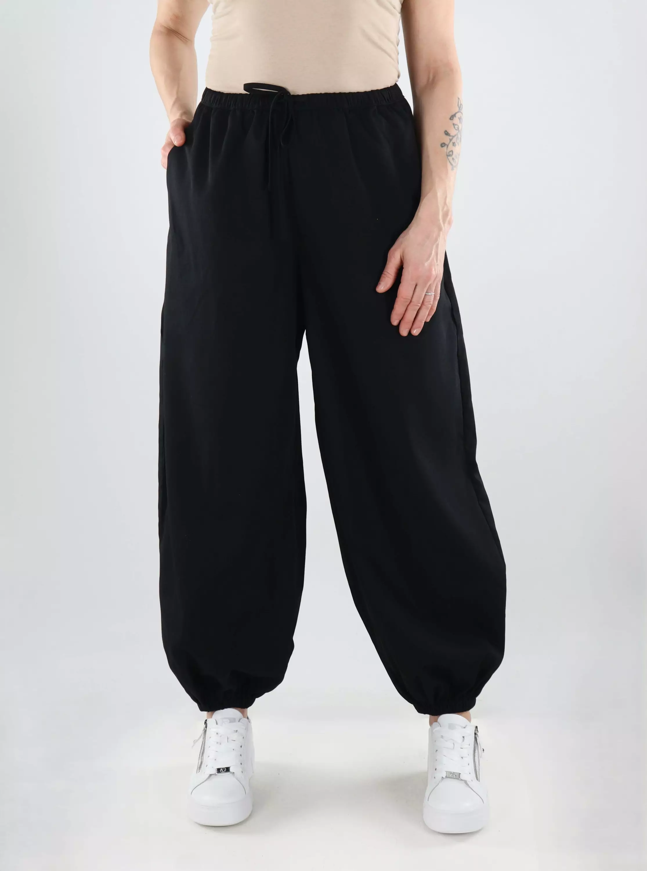 Balloon-malliset housut, jotka sopivat täydellisesti arkeen ja vapaa-aikaan! Mukava istuvuus ja käytännölliset sivutaskut tekevät housuista helpon ja huolettoman valinnan.