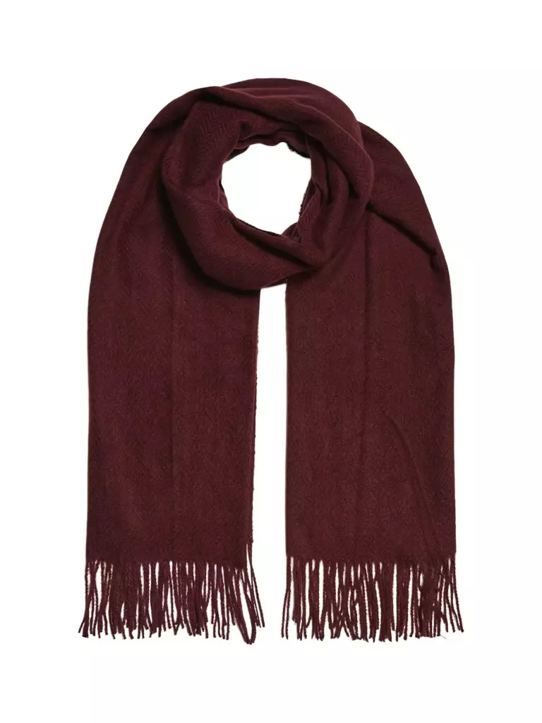 Pehmeä neulehuivi kauniissa viininpunaisen sävyssä.