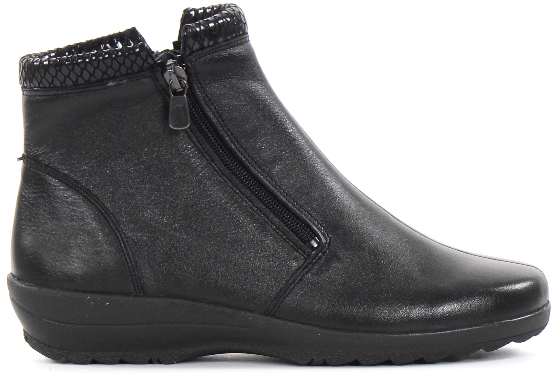 Flexible and spacious ankle boots with H-last and non-slip sole.