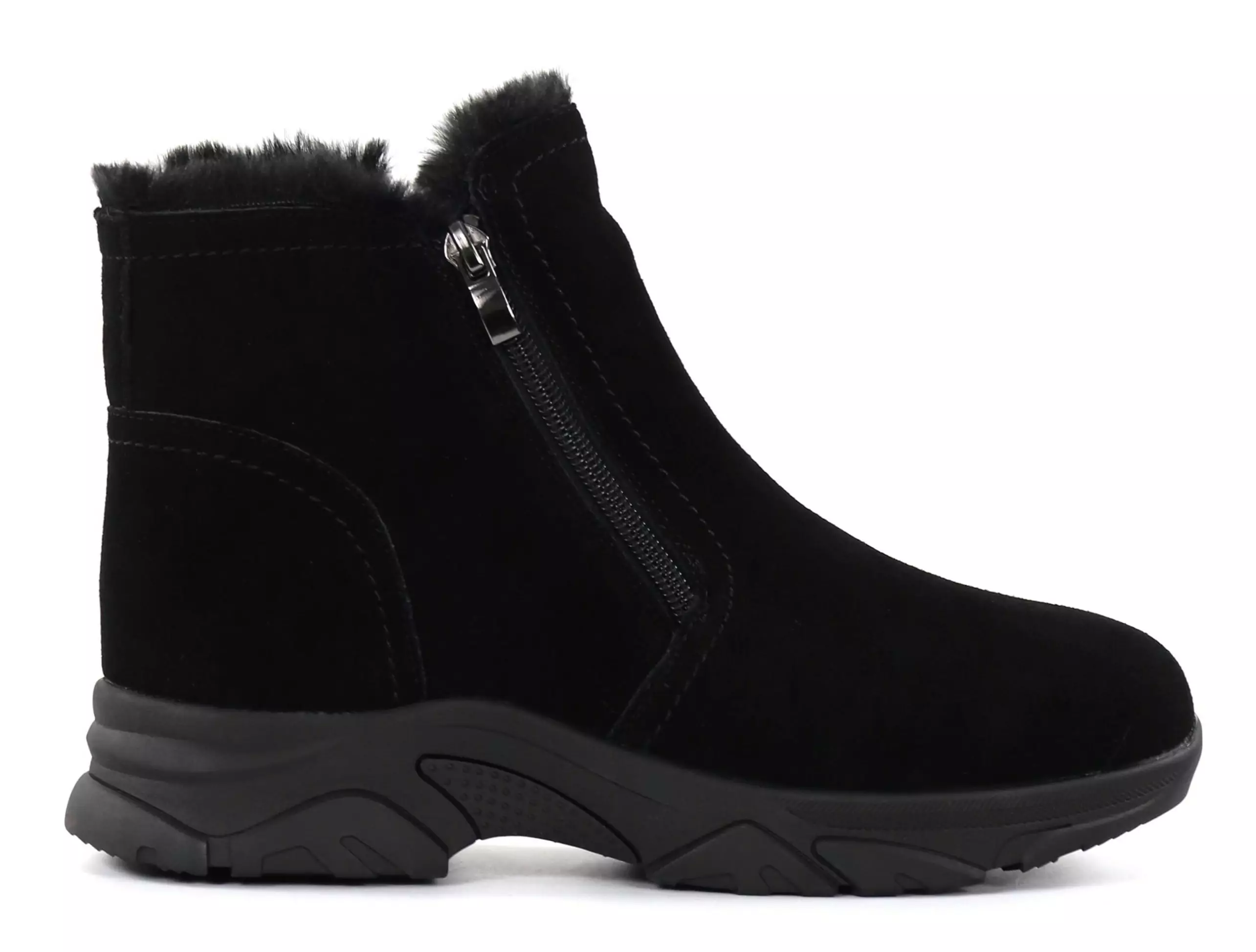 Waterproof leather ankle boots with a warm artificial fur lining. Zippers on both sides guarantee easy putting on the shoe!