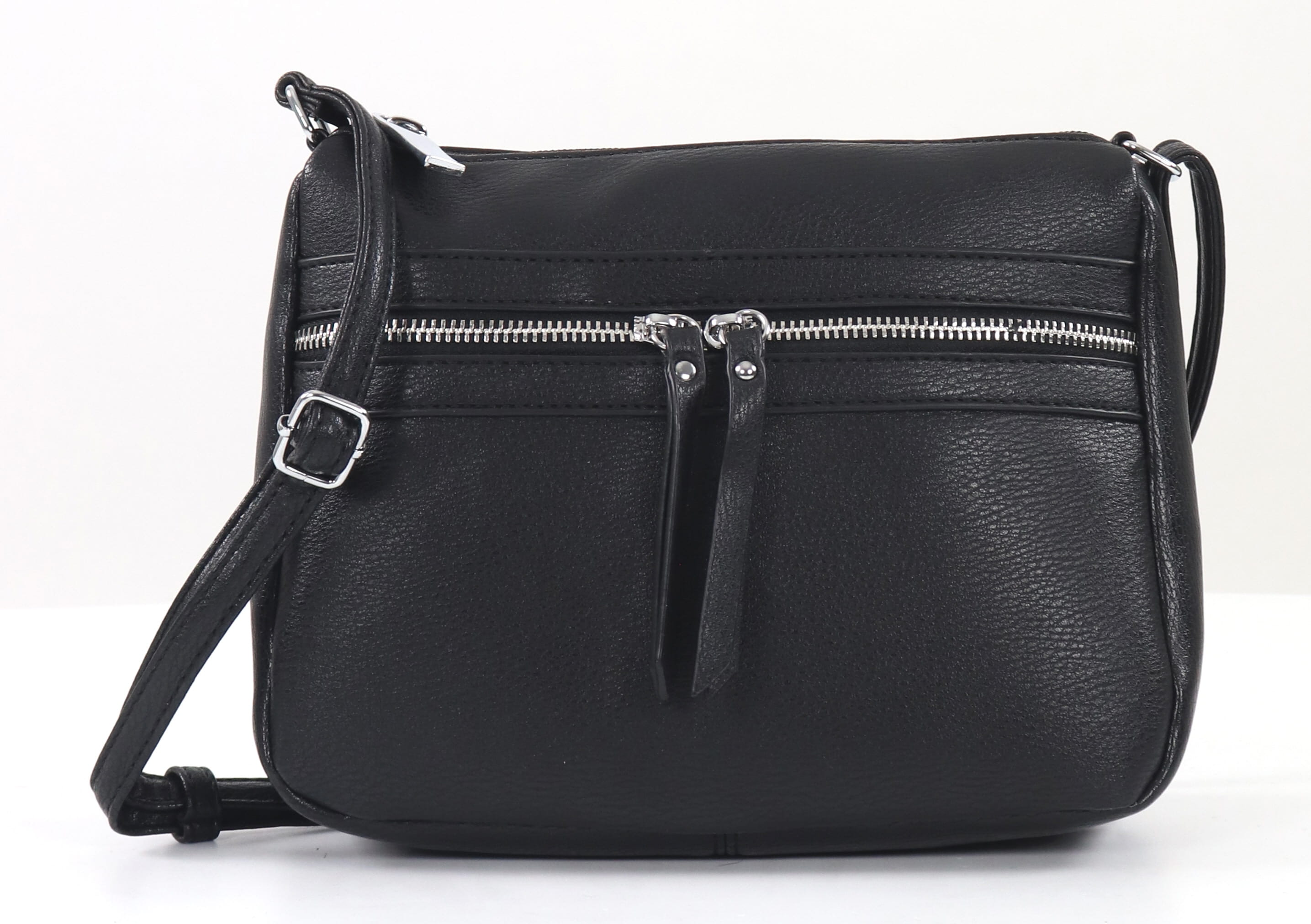 Synthetic material shoulder bag with adjustable shoulder strap.