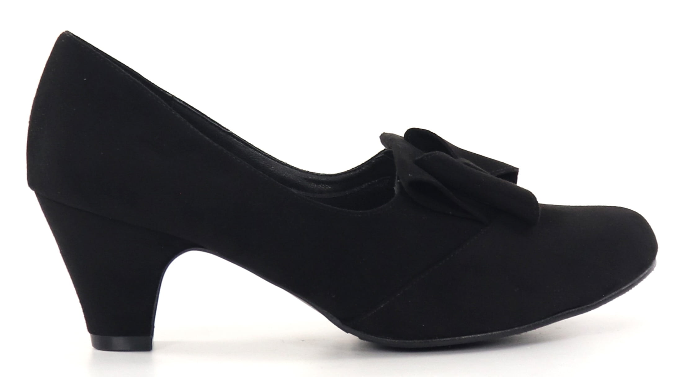 Beautiful pumps with soft surface, a bow tie and wide last.