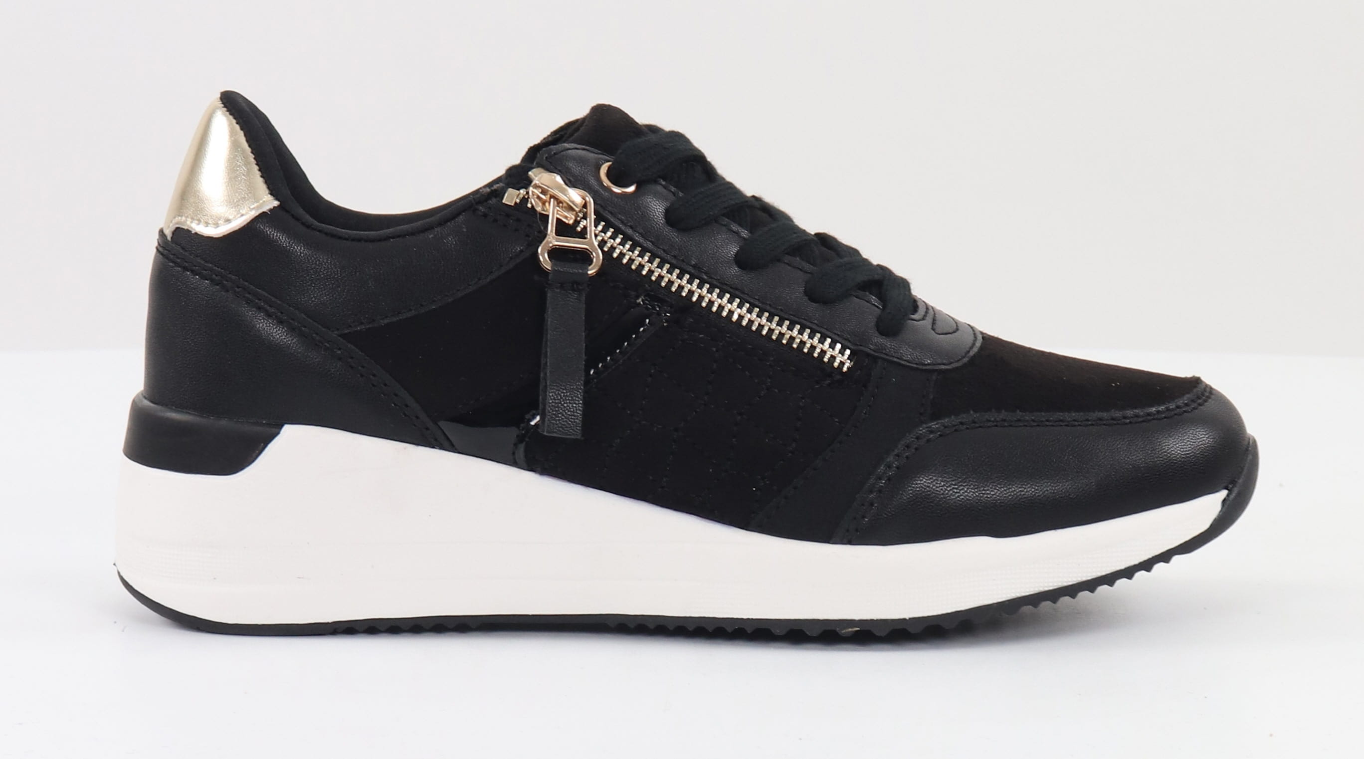 Stylish sneakers with golden details.