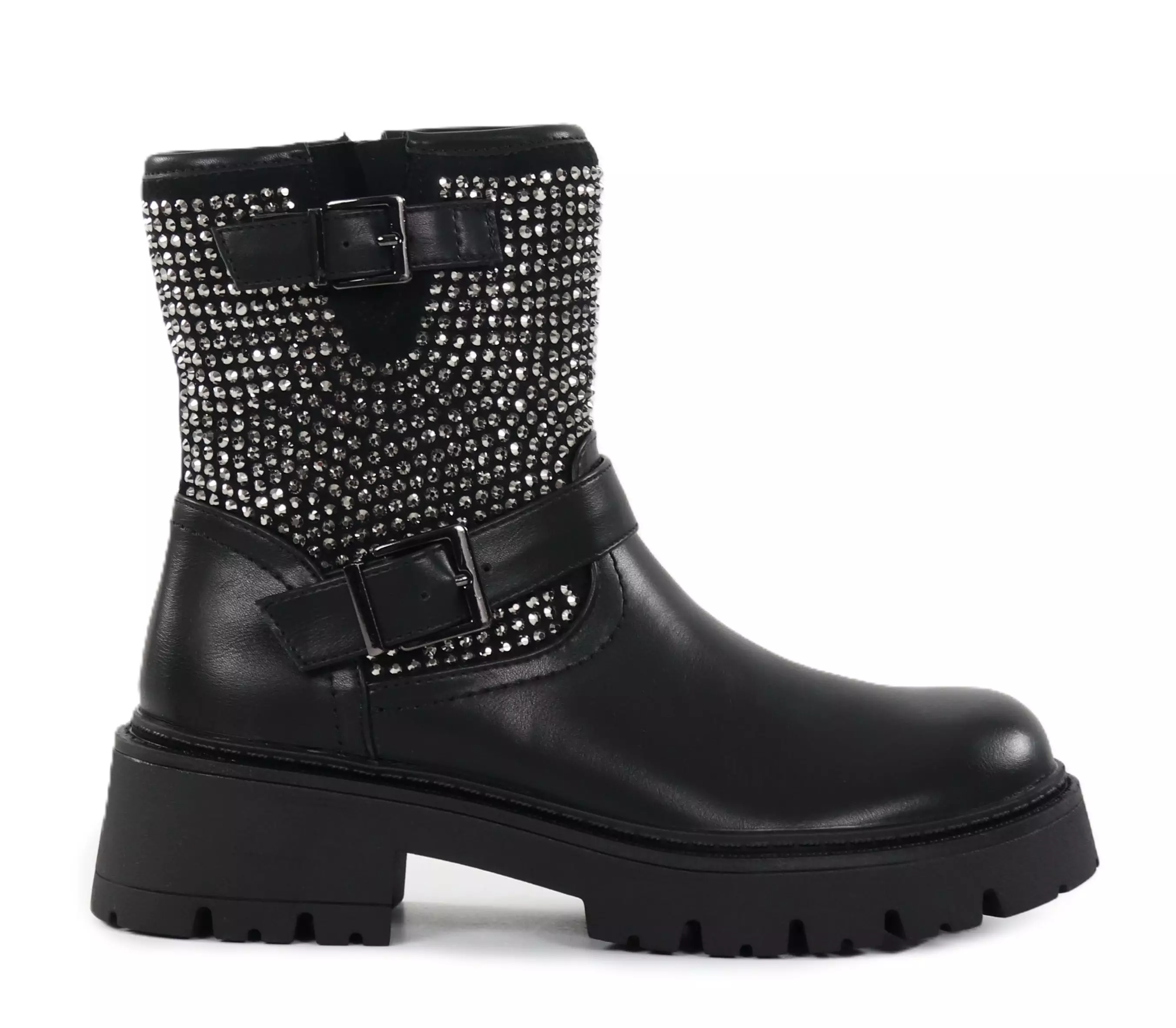 Duffy ankle boots combine a trendy look with striking details. The sparkling rhinestones on the shaft add just the right amount of sparkle, and the two buckles on the outer side add a rugged look. A stylish choice when you want to stand out in a casual, fashionable way!