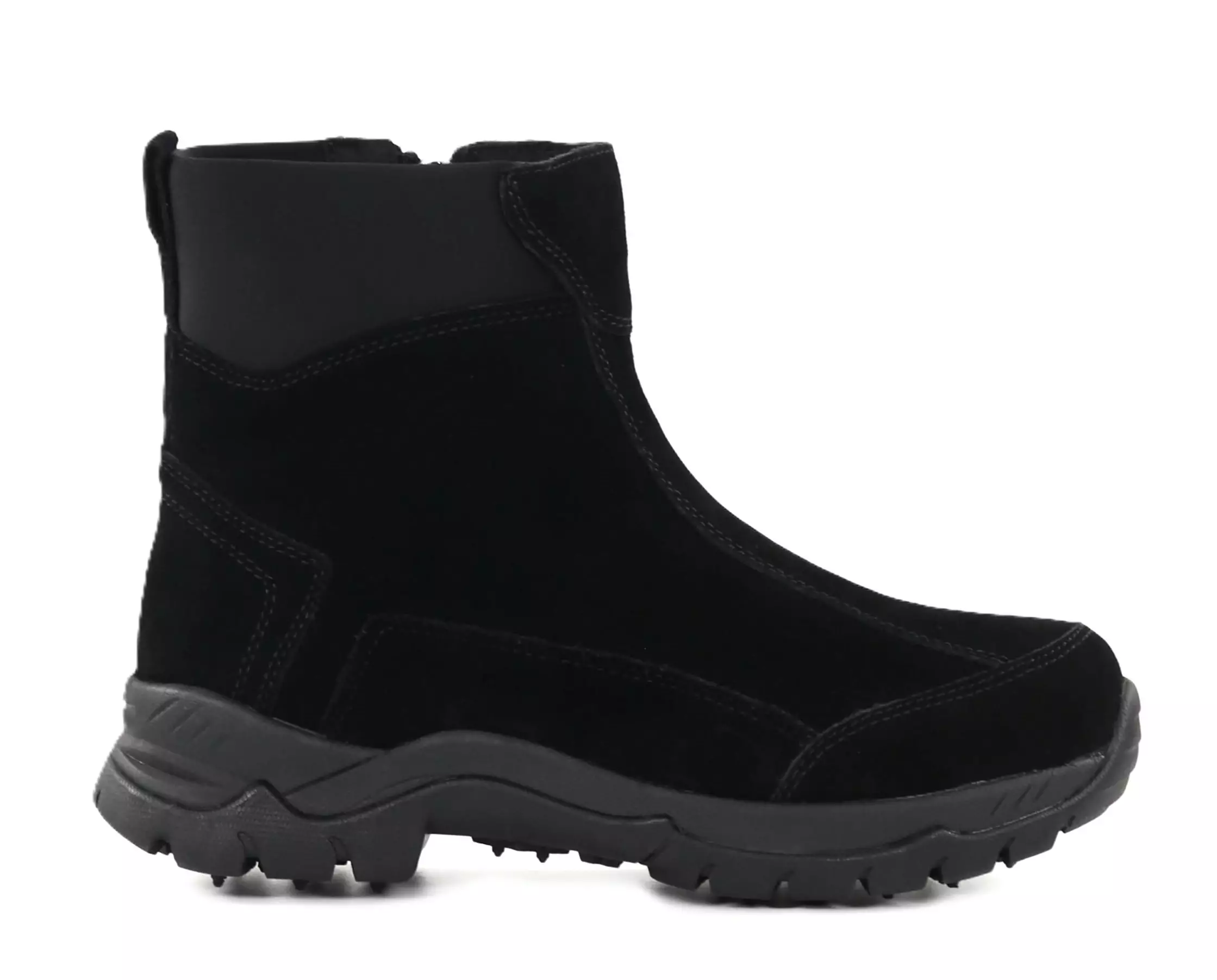 Warm suede studded ankle boots with a soft faux fur lining and insole that provide excellent comfort and warmth for winter days. The studded sole increases grip on slippery surfaces, making the shoes a safe and stylish choice.