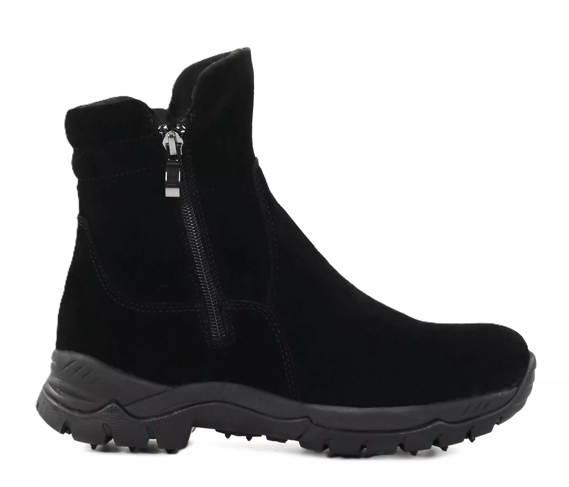 Eskimo suede studded ankle boots are a sure choice for cold and slippery winter conditions! Genuine sheep's wool lining and insole provide natural warmth and comfort. Two zippers on the sides make it easy to put on. The studded rubber sole ensures excellent grip on slippery surfaces.