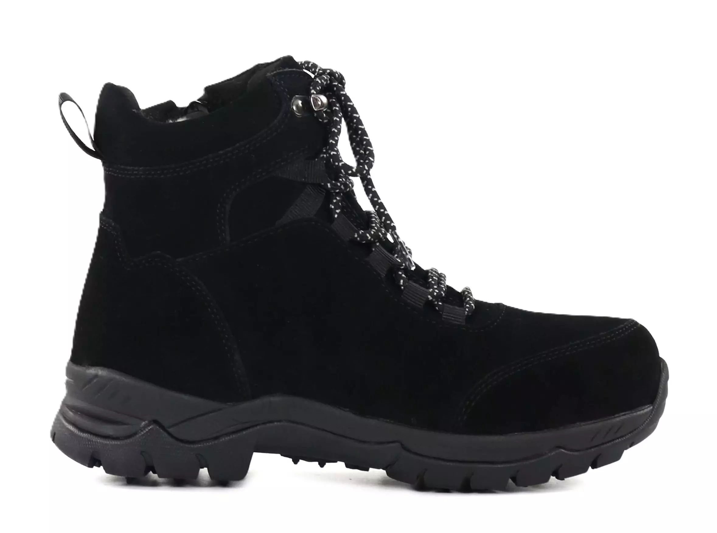 Waterproof suede studded ankle boots offer the perfect combination of warmth, grip and comfort. The soft sheep's wool lining keeps your feet warm. The zipper on the inner side makes it easy to put on, and the adjustable lacing ensures a personalized fit.