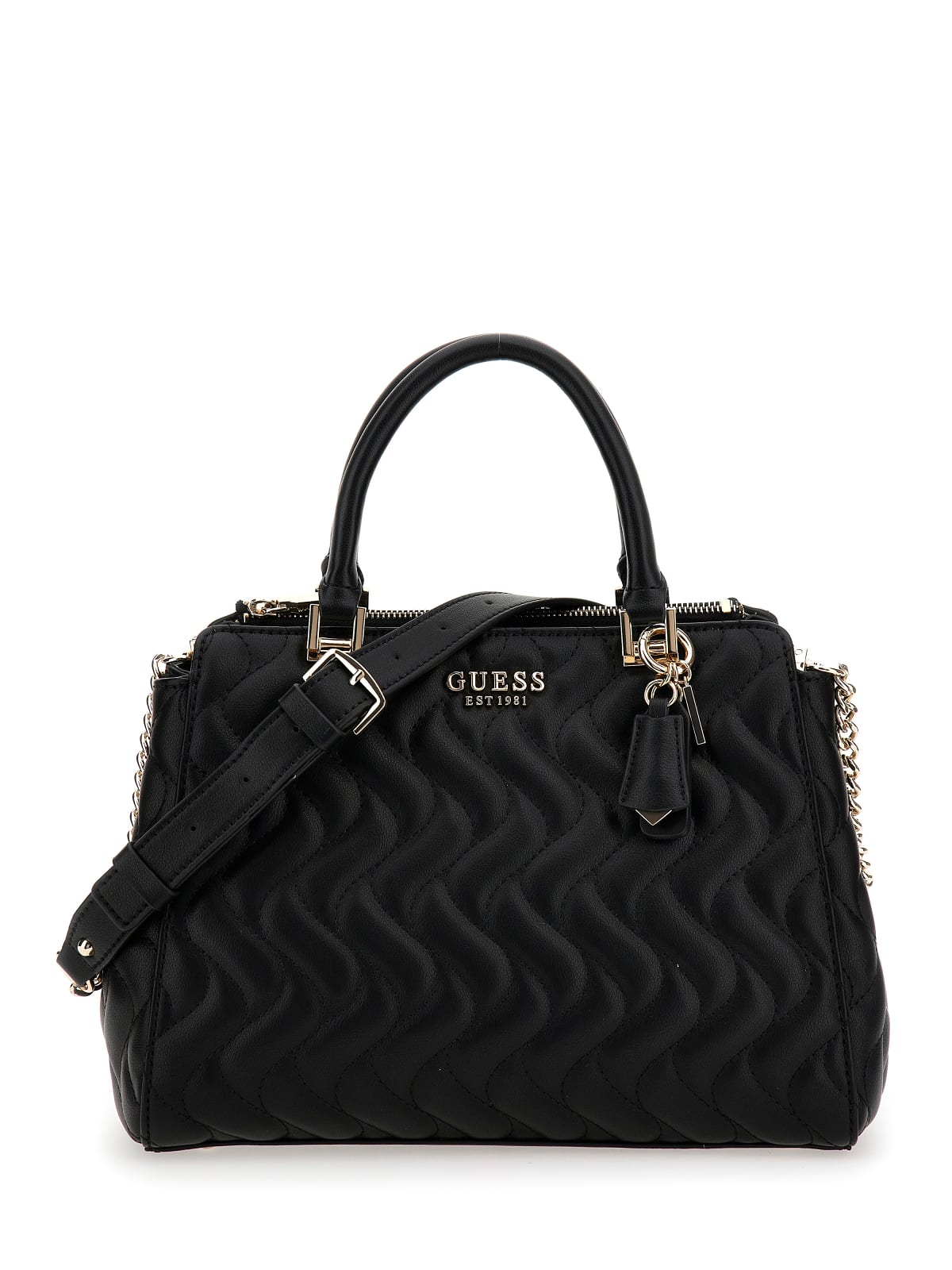 Trendy medium-sized Guess bag with a quilted pattern. In Guess, you are always stylishly dressed. High-quality materials guarantee the durability and longevity of the bag.