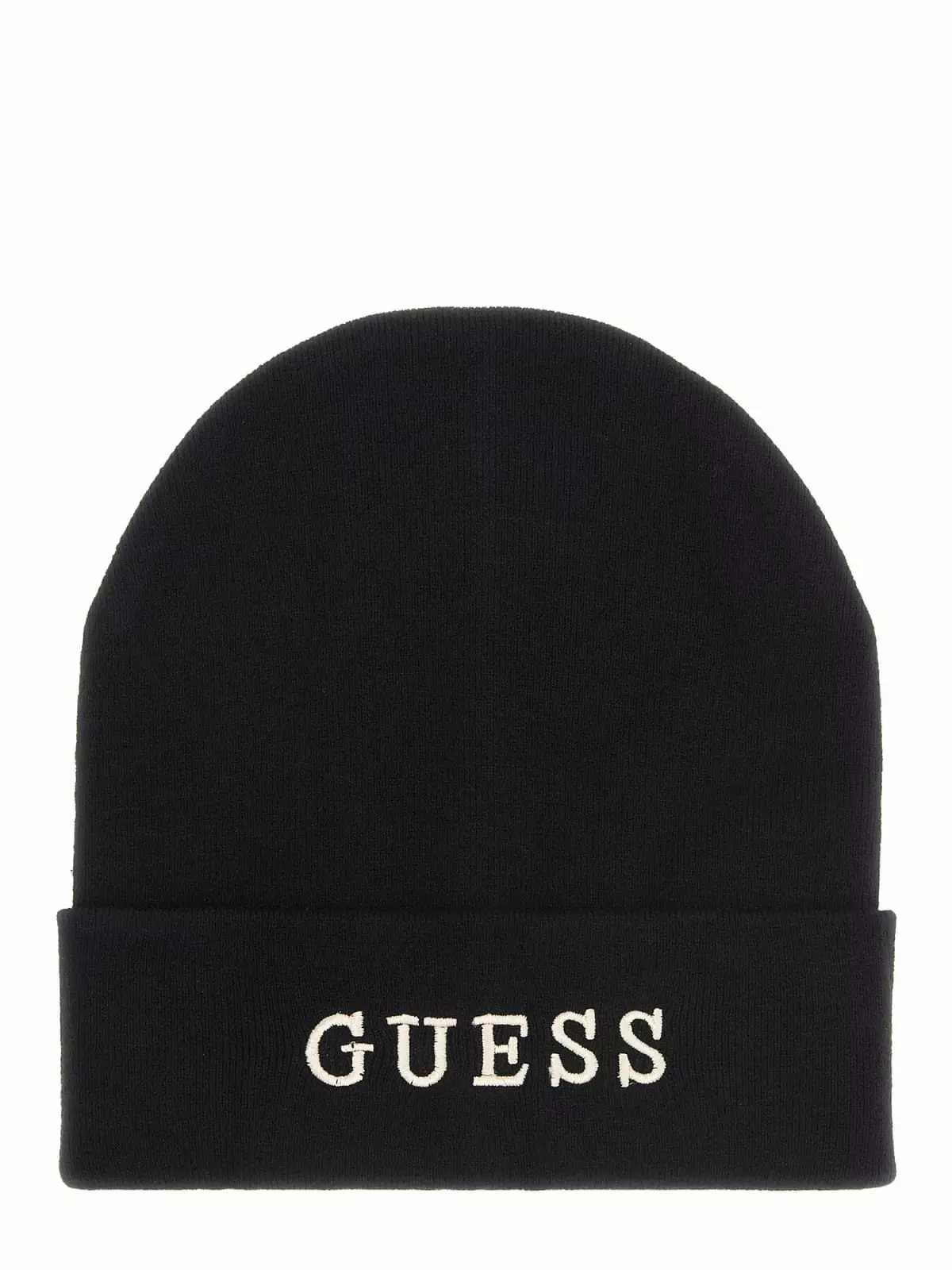 Stretchy knit beanie. Embroidered Guess logo on the front.