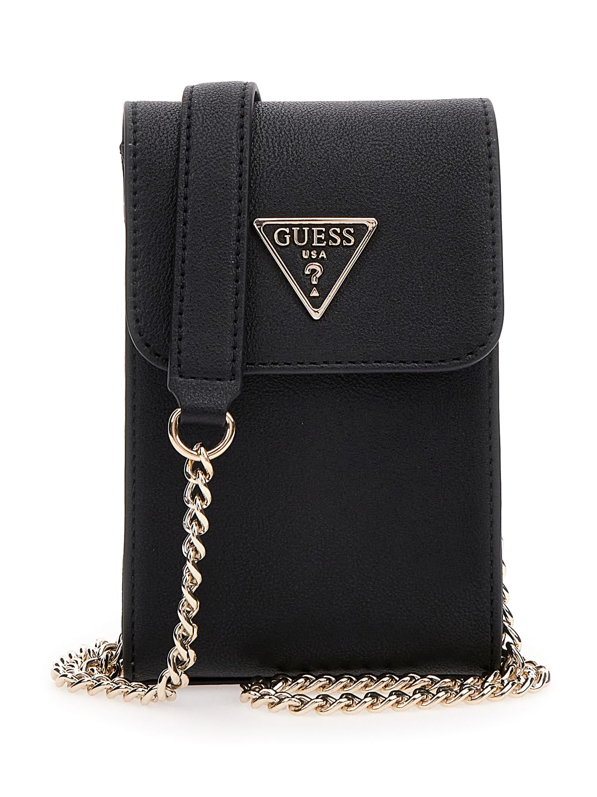 A stylish phone bag by Guess with a beautiful gold-colored chain strap.