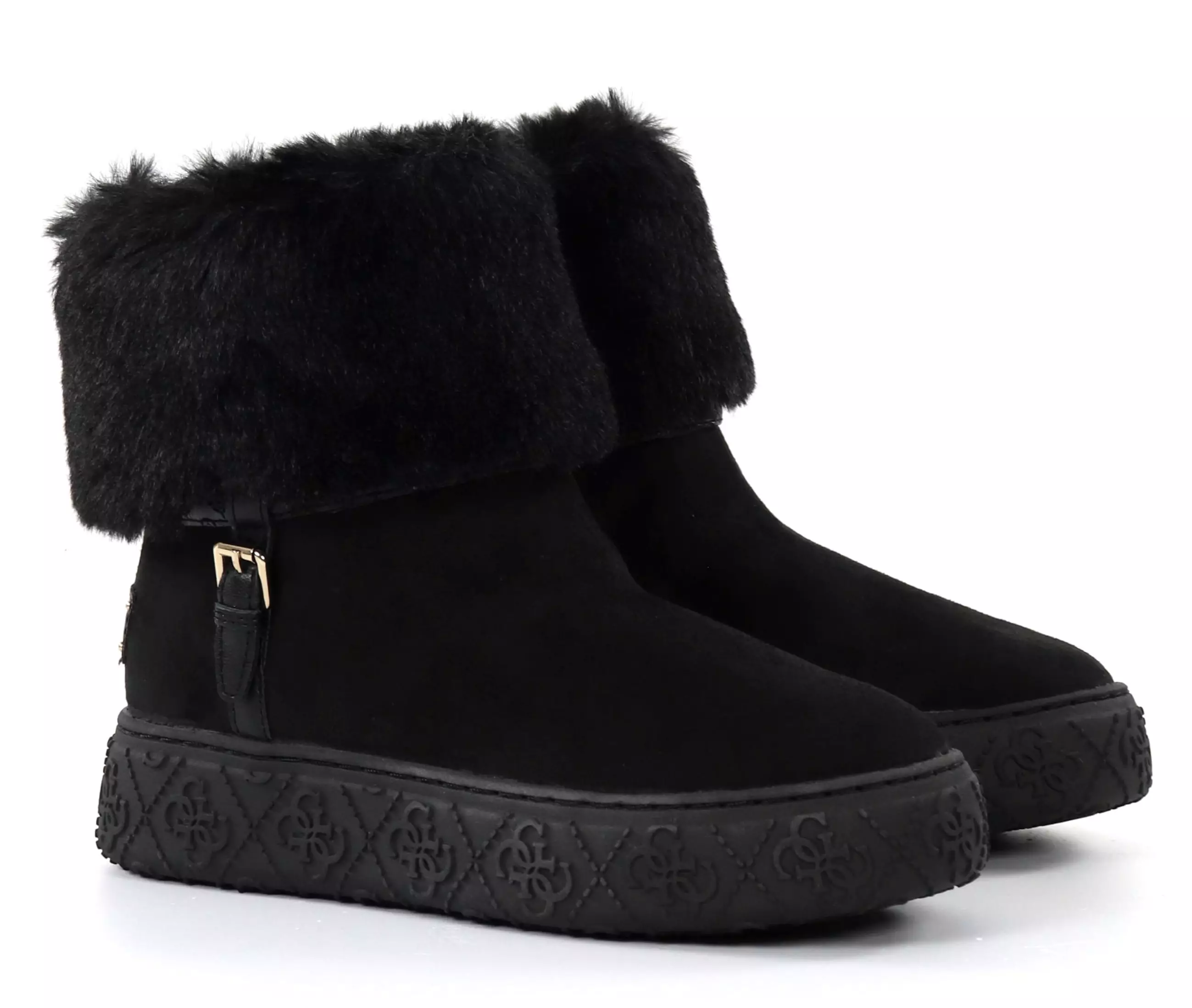 Gorgeous Guess ankle boots with artificial fur trim, warm lining and stylish golden details.