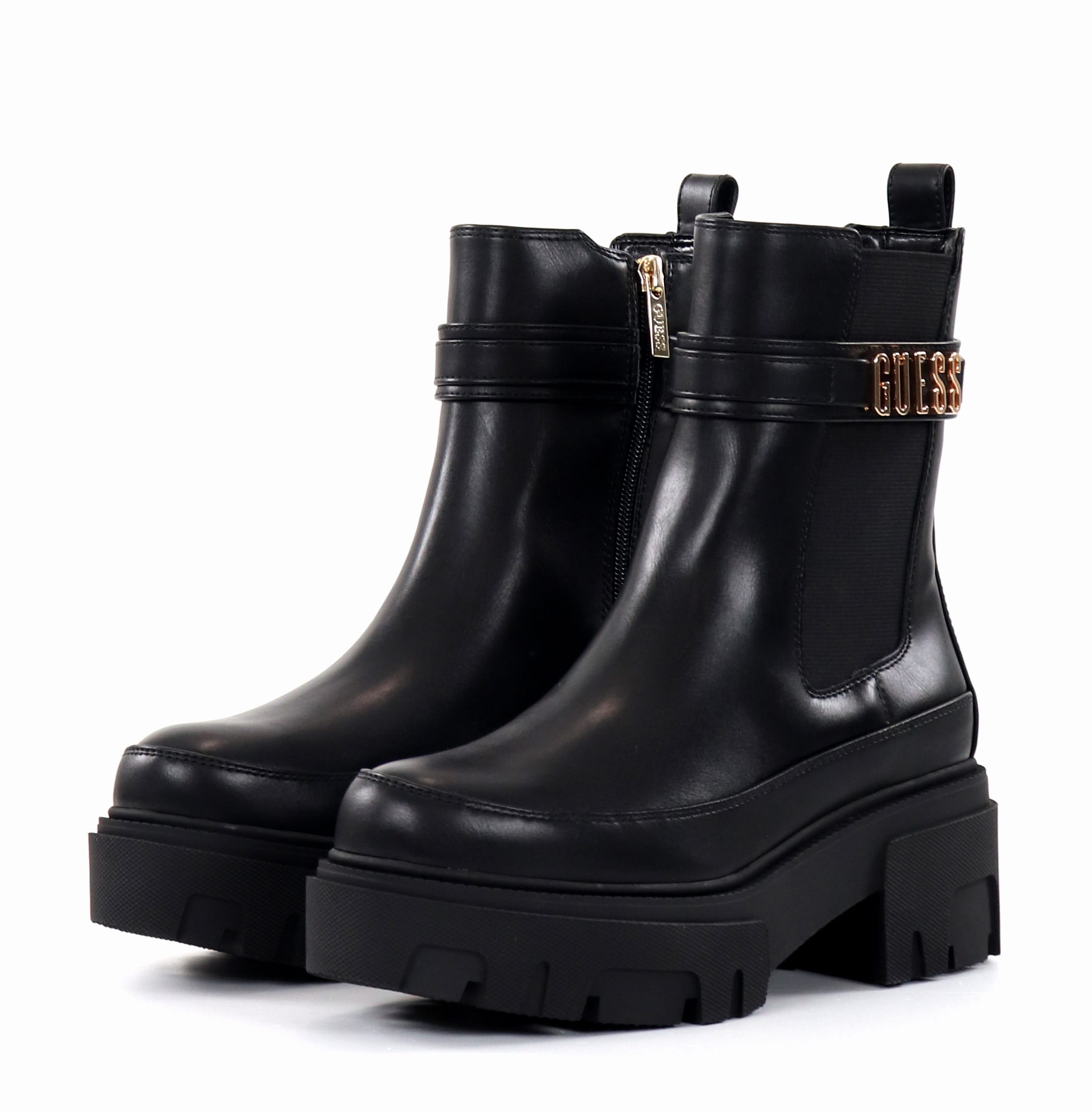Trendy thick-soled ankle boots from Guess. Thanks to the zipper and the elastic gusset, the shoes are easy and quick to put on!