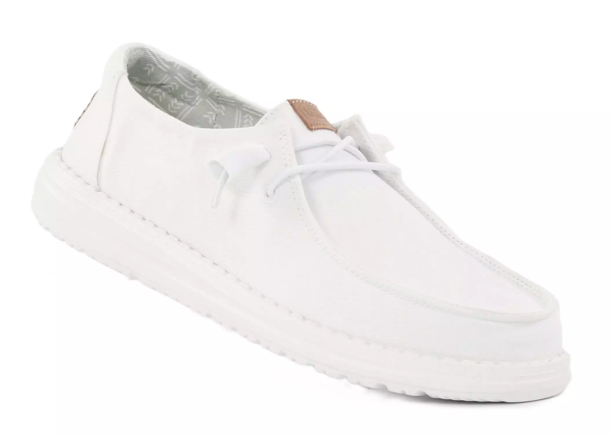 Lightweight white HEYDUDE shoes with stretchy laces make putting them on effortless. Removable and padded insoles increase comfort with every step.