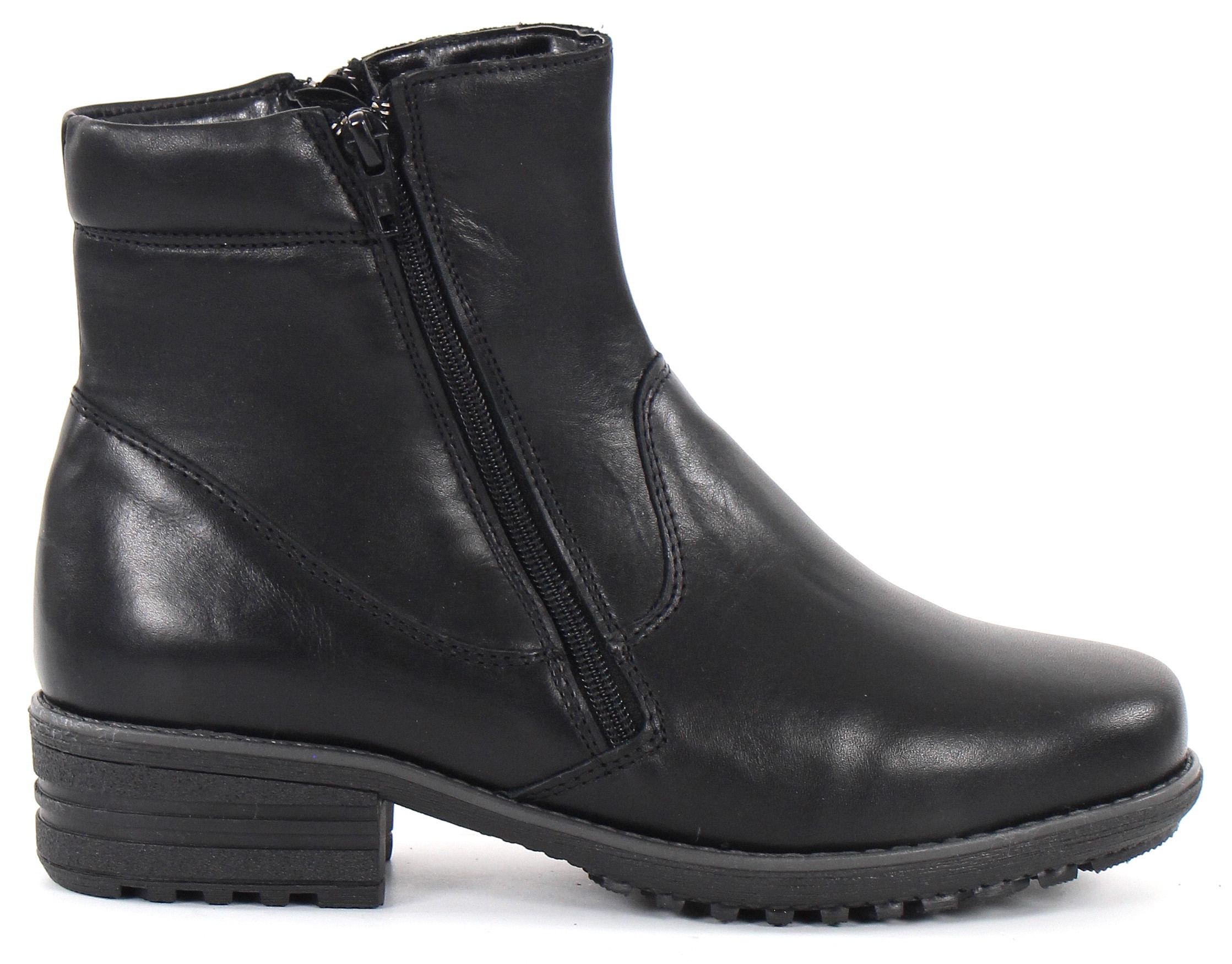 Leather ankle boots with wide lasts and Grip+ soles, zippers on the both sides.
