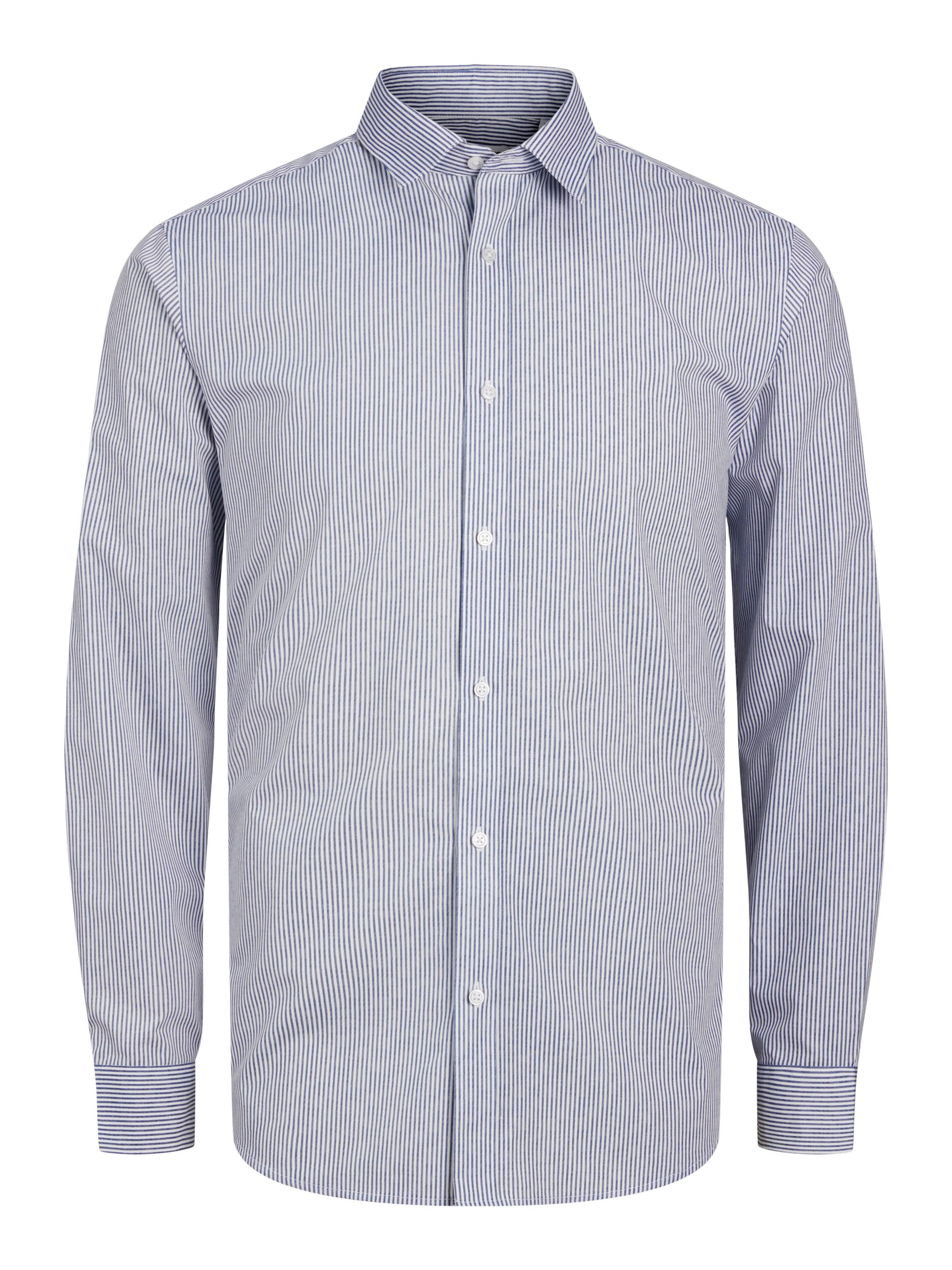 A stylish striped dress shirt made of a high-quality cotton blend.
