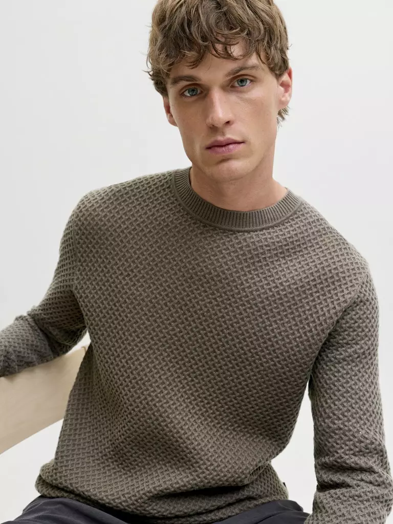 Men's cotton sweater in textured knit. A classic and simple, stylish model that is perfect for everyday wear as well as casual parties!