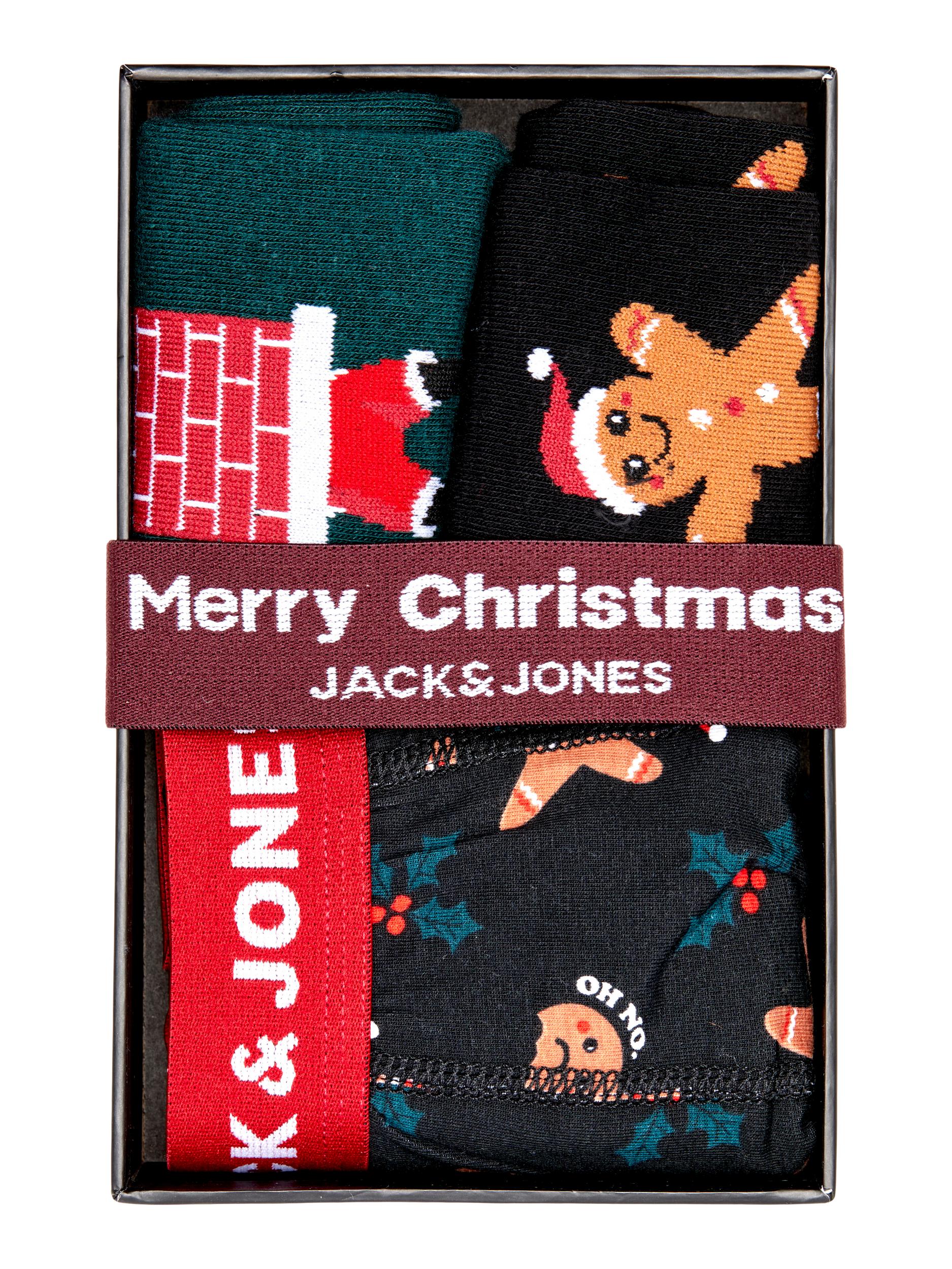 Christmas themed boxers and two pairs of socks in a giftbox.