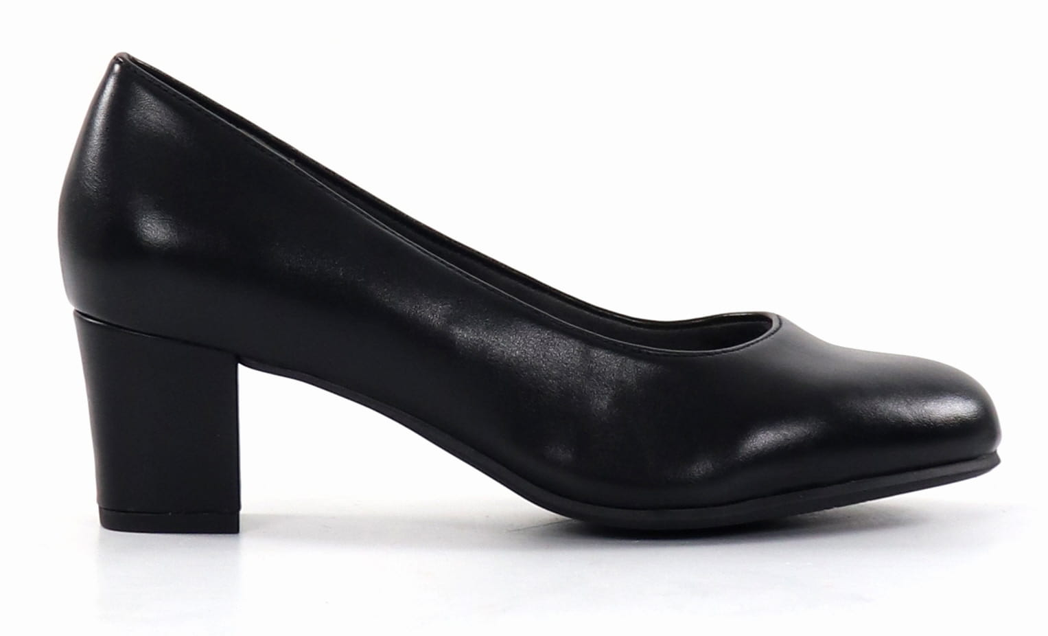 Stylish black party shoe made of black artificial leather. The Soft Line insole brings comfort to the foot. Wider than normal H-last.