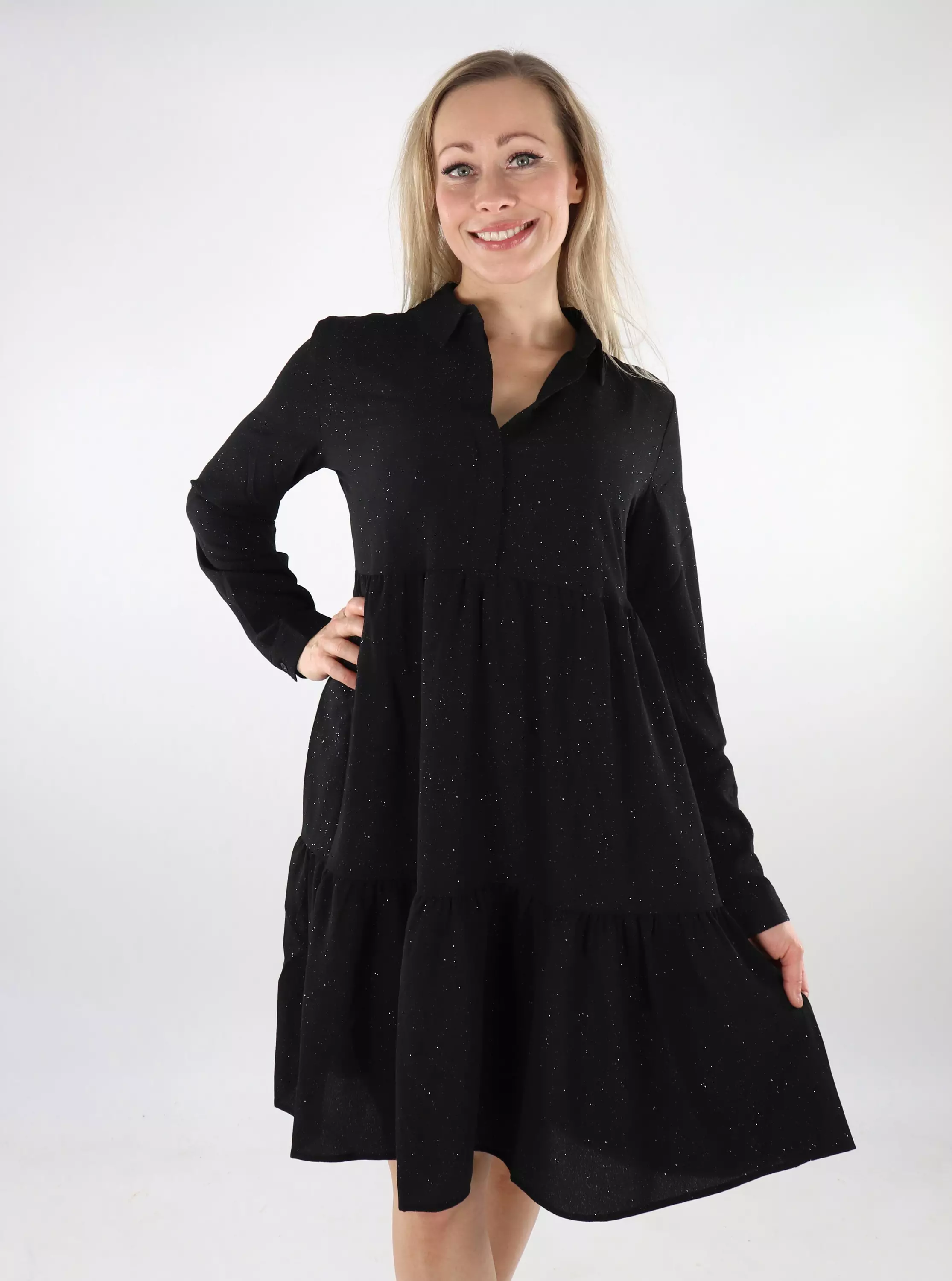 Beautiful A-line glitter dress made of light material.
