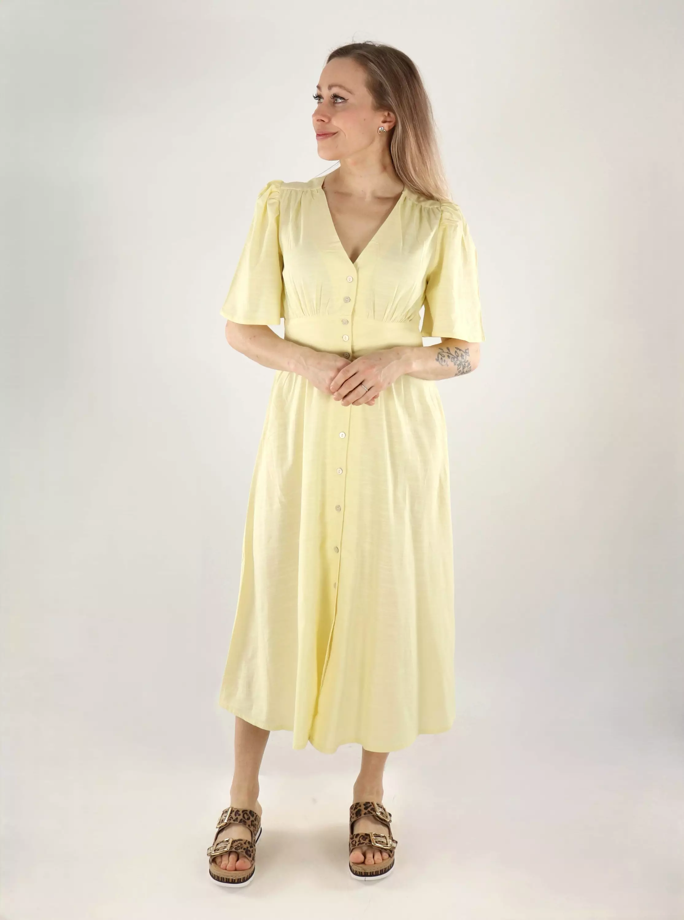 A feminine dress from JDY with a V-neck and button closure. The lightweight material feels comfortable on the skin!