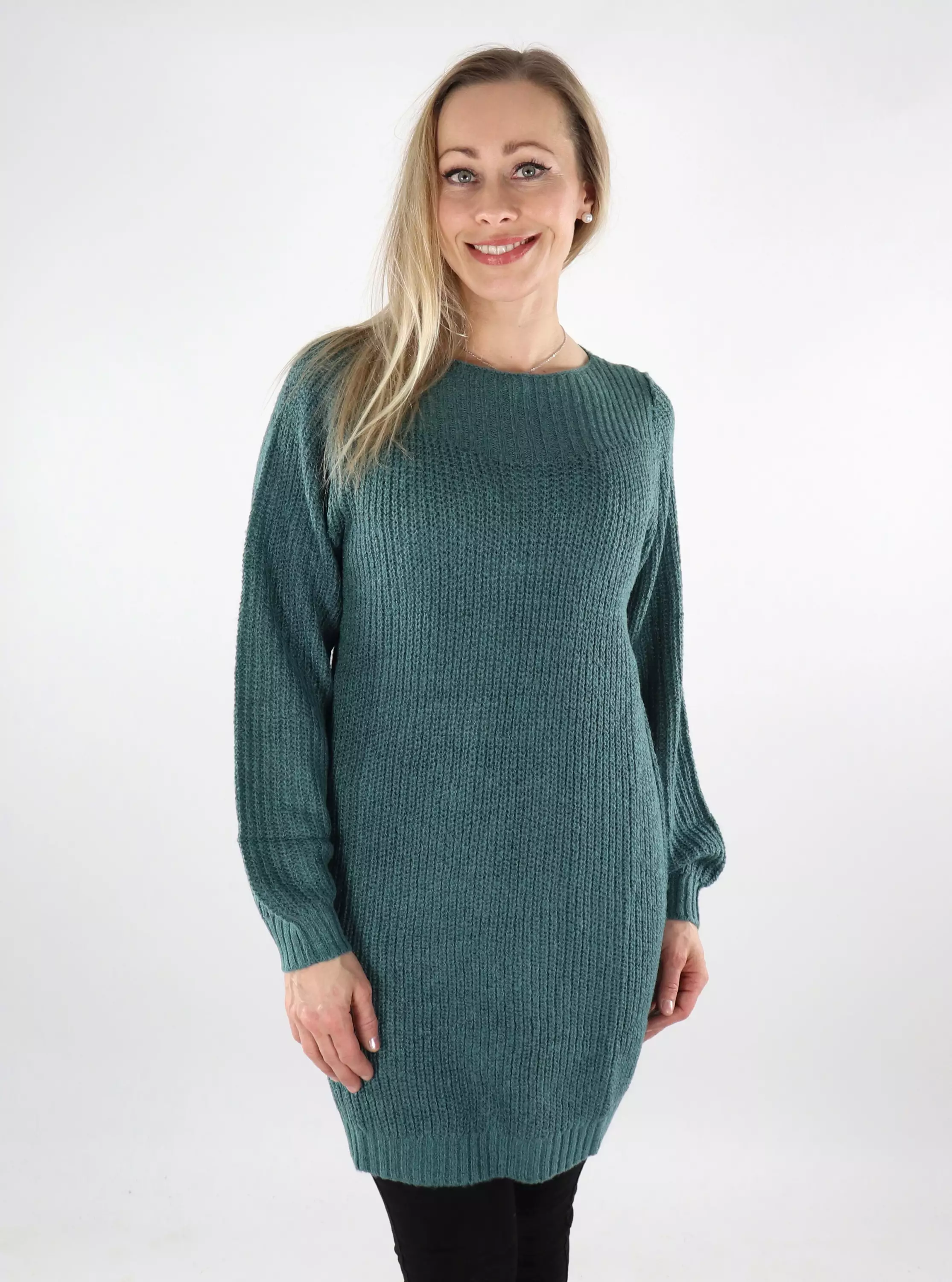 A beautiful knitted dress with a boat neck and relaxed sleeves.