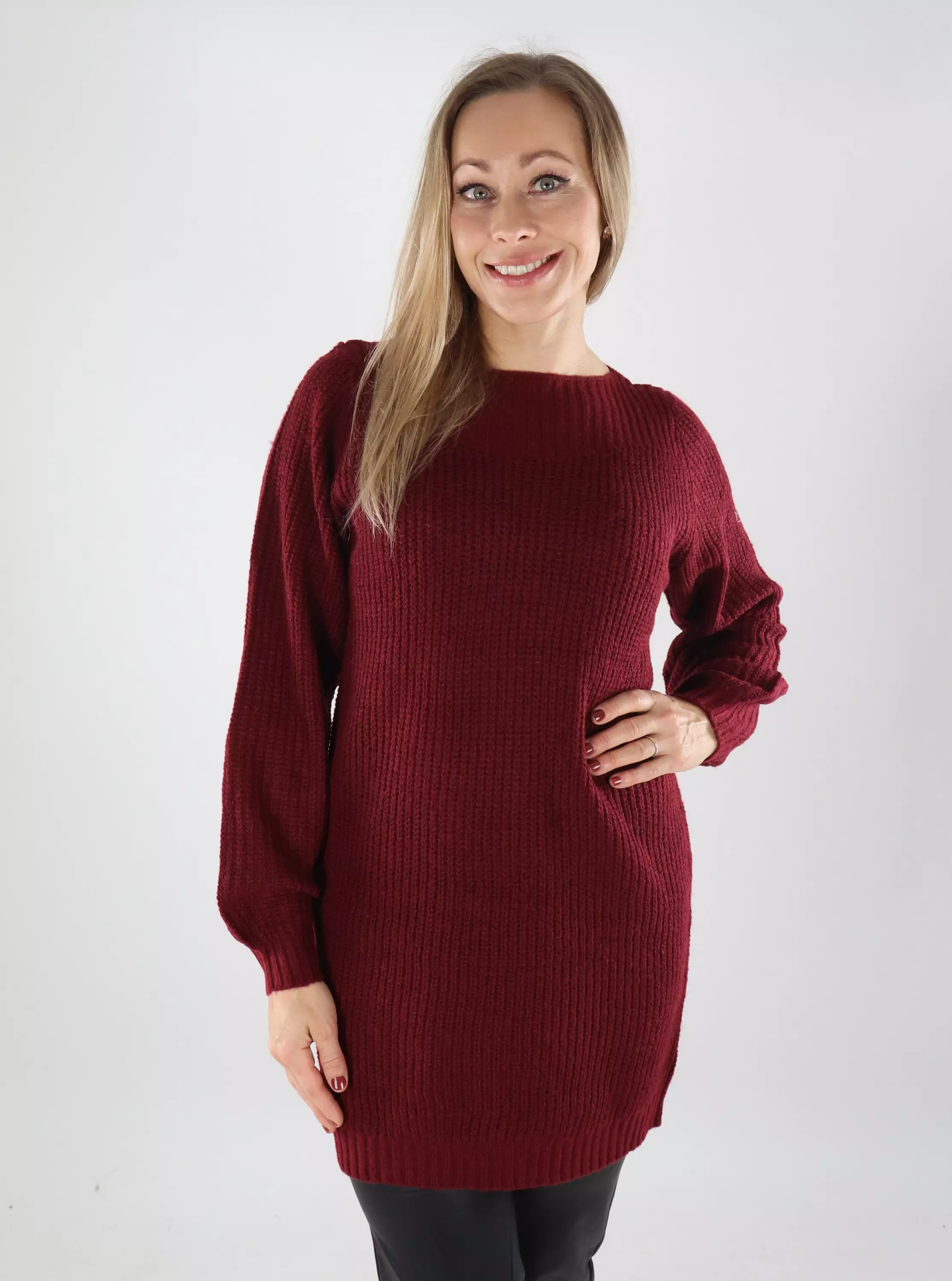 Beautiful knit dress with a boat neckline and relaxed sleeves.