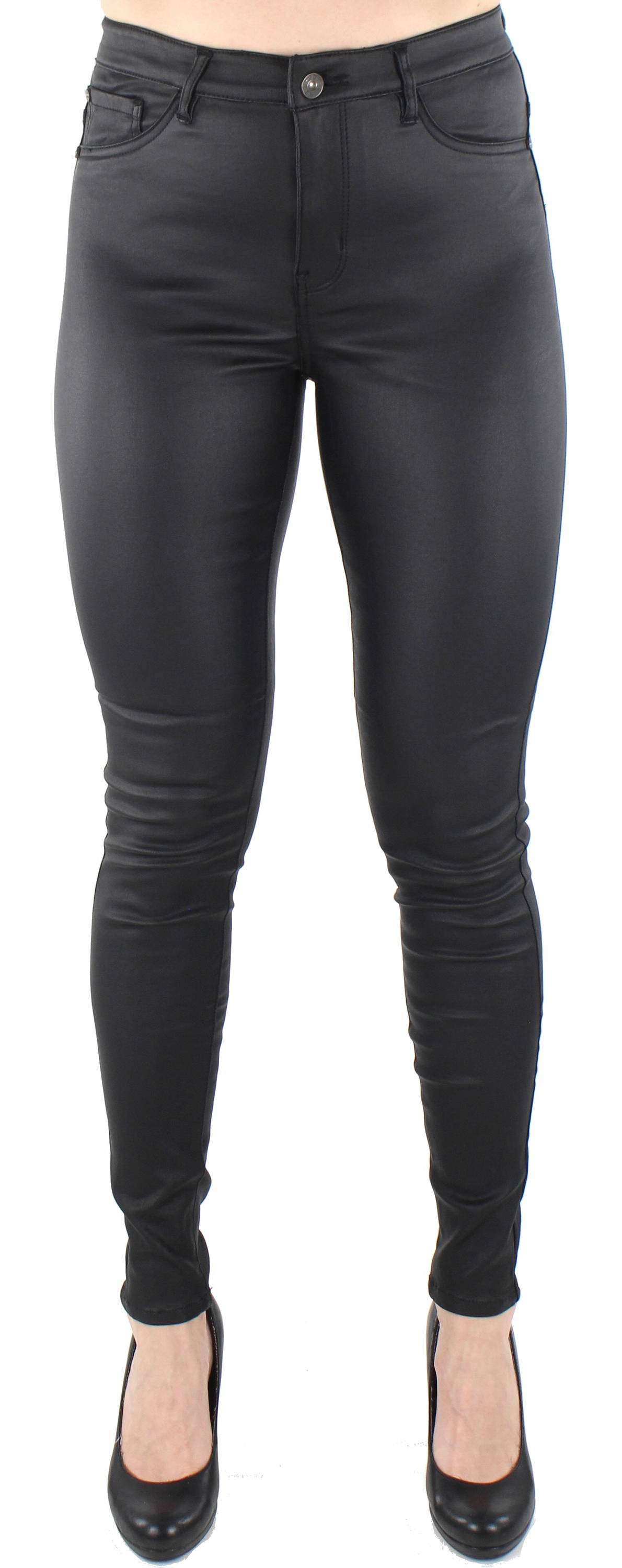Coated, stretchy leggings.
