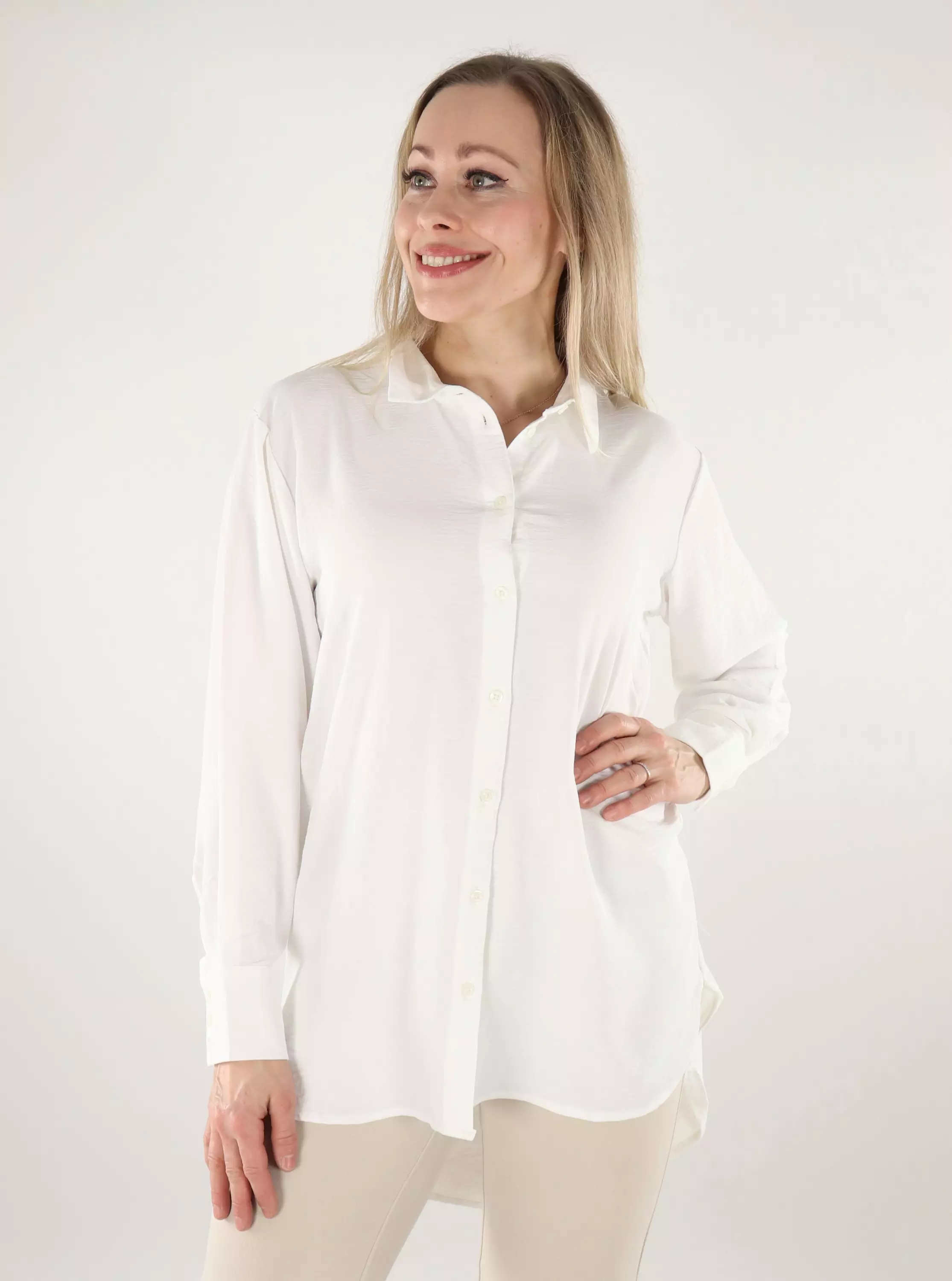 A casual shirt with a longer, rounded hem. Made of slightly stretchy material!