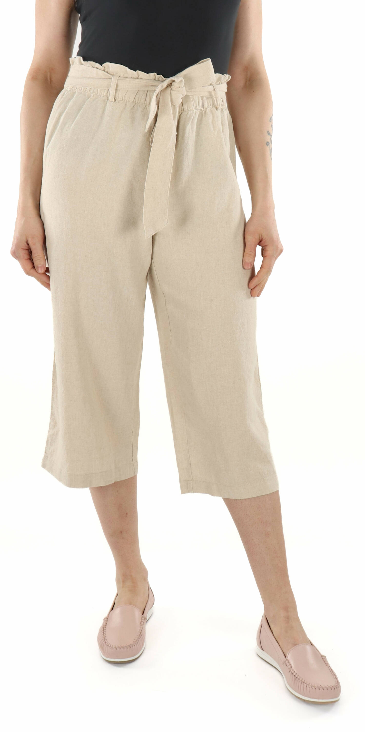 Cropped linen blend trousers with a belt that can be tied at the waist. Ideal for warm summer days!