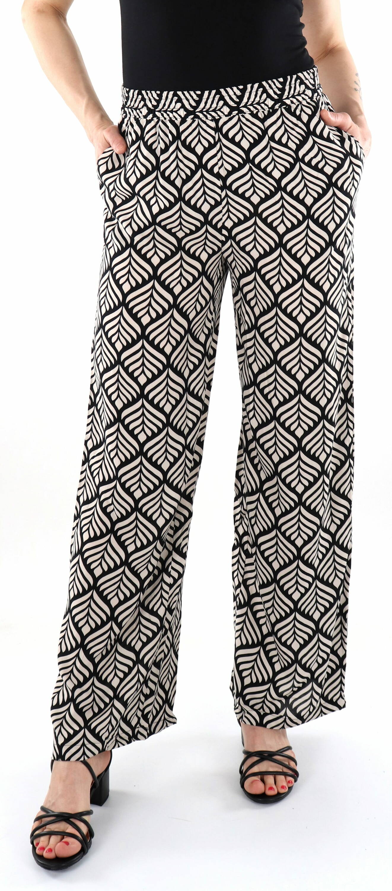 Wide leg trousers with a stylish pattern. Light and breathable viscose.