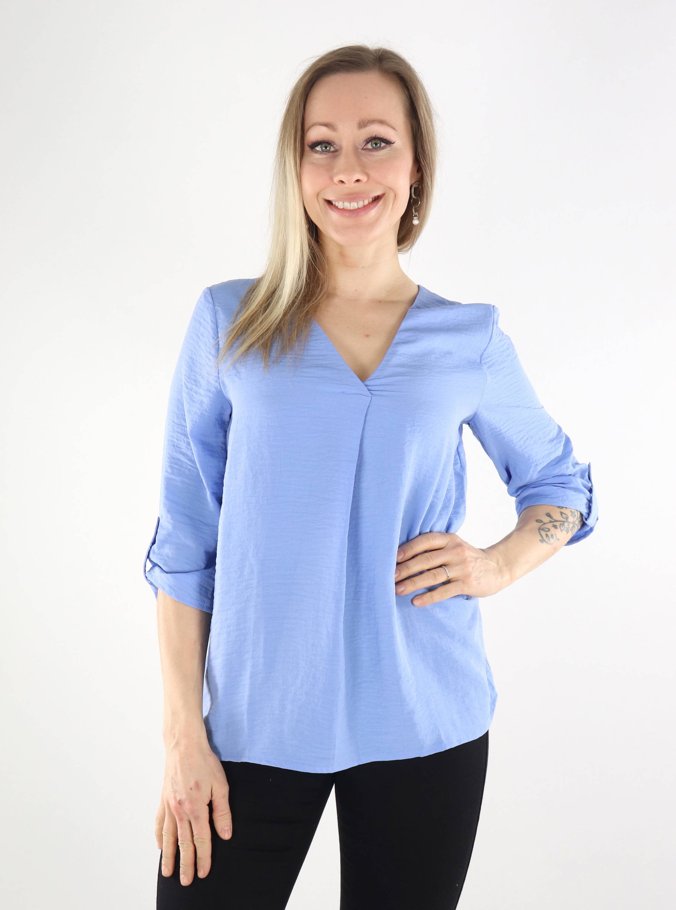 A light, beautifully flowing shirt with a V-neckline and a decorative pleat.