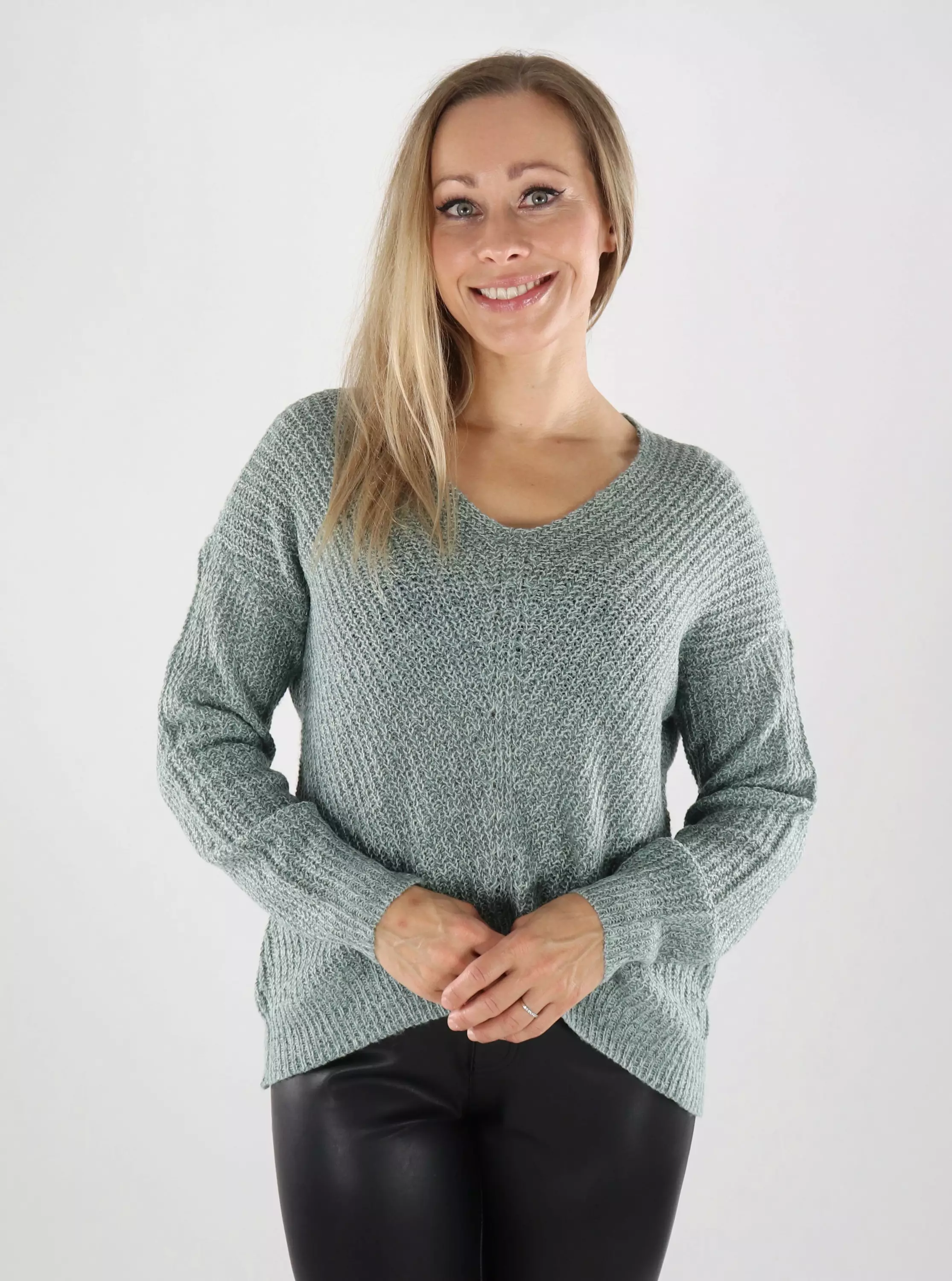 A relaxed fit sweater with a V-neck. The soft and stretchy material makes this a staple for everyday wear!