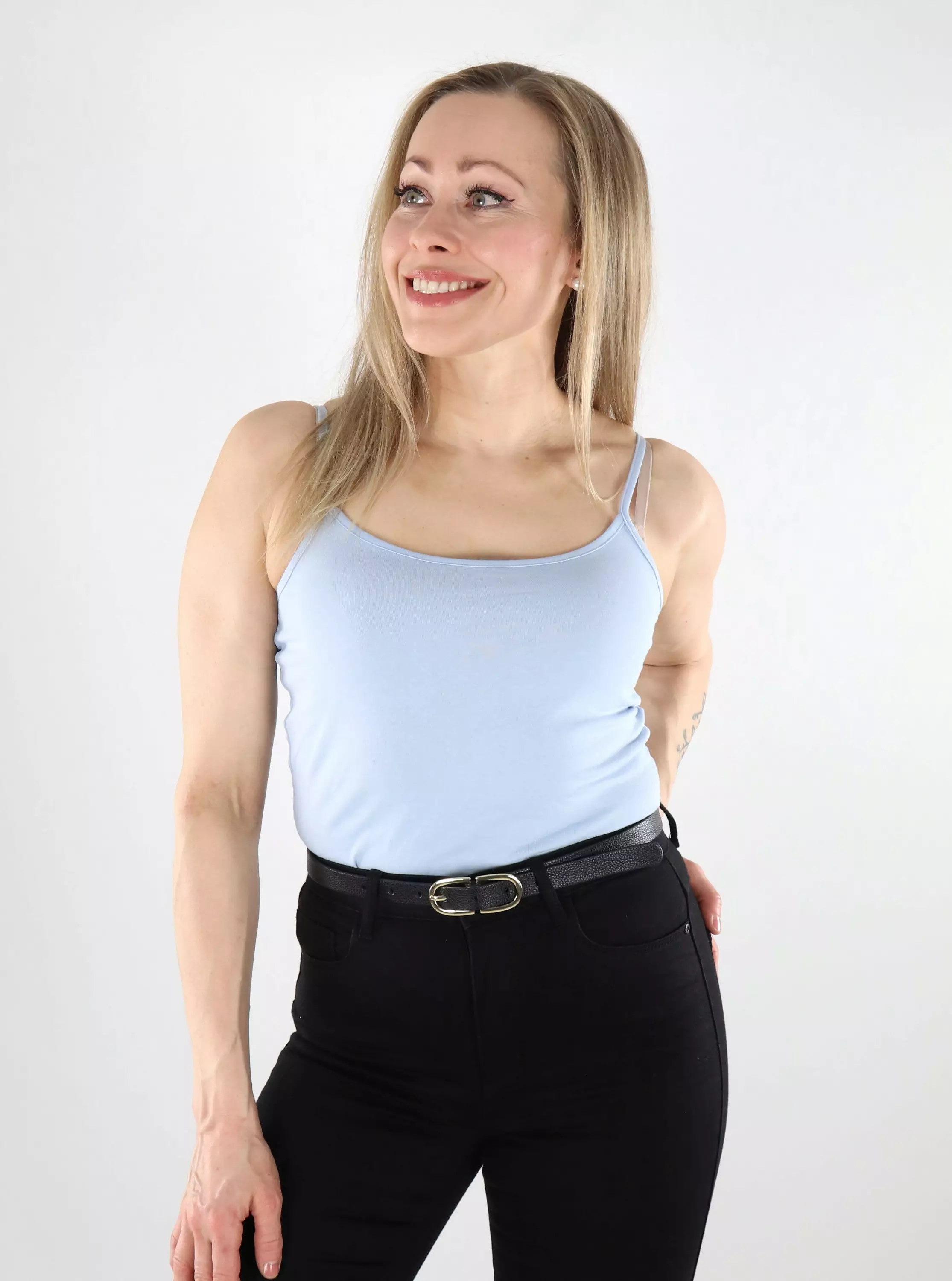 A really soft cotton top with adjustable strapless straps and stretchy material for a great fit.