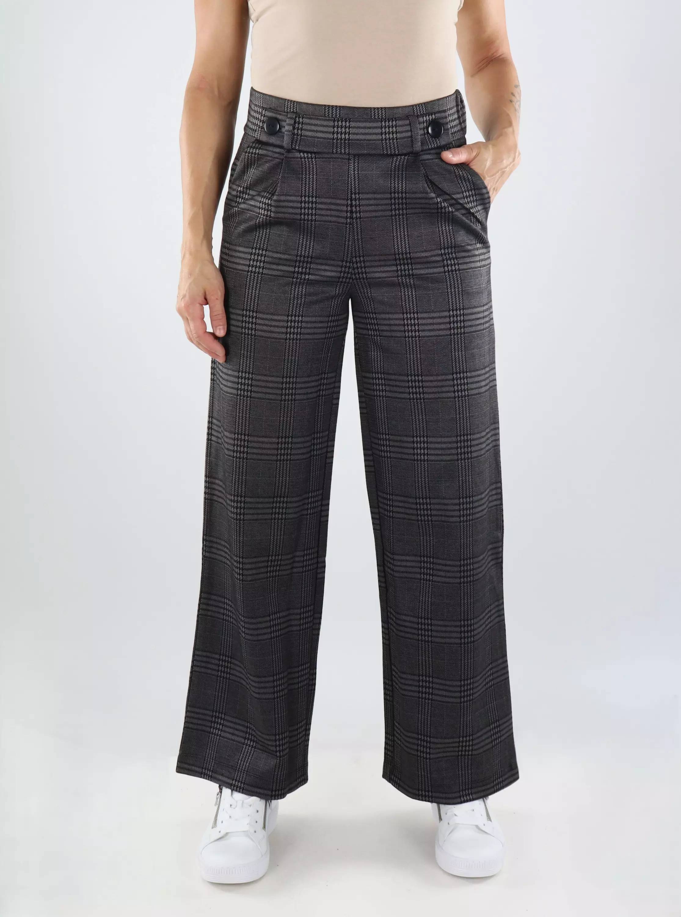Checked, wide-leg trousers with beautiful button details. The elastic waistband makes the trousers fit perfectly. A stylish choice for the office, leisure time and parties!