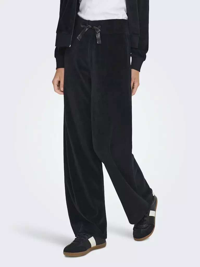 Soft velour pants with a satin drawstring for a trendy detail. Perfect for casual and leisure wear!