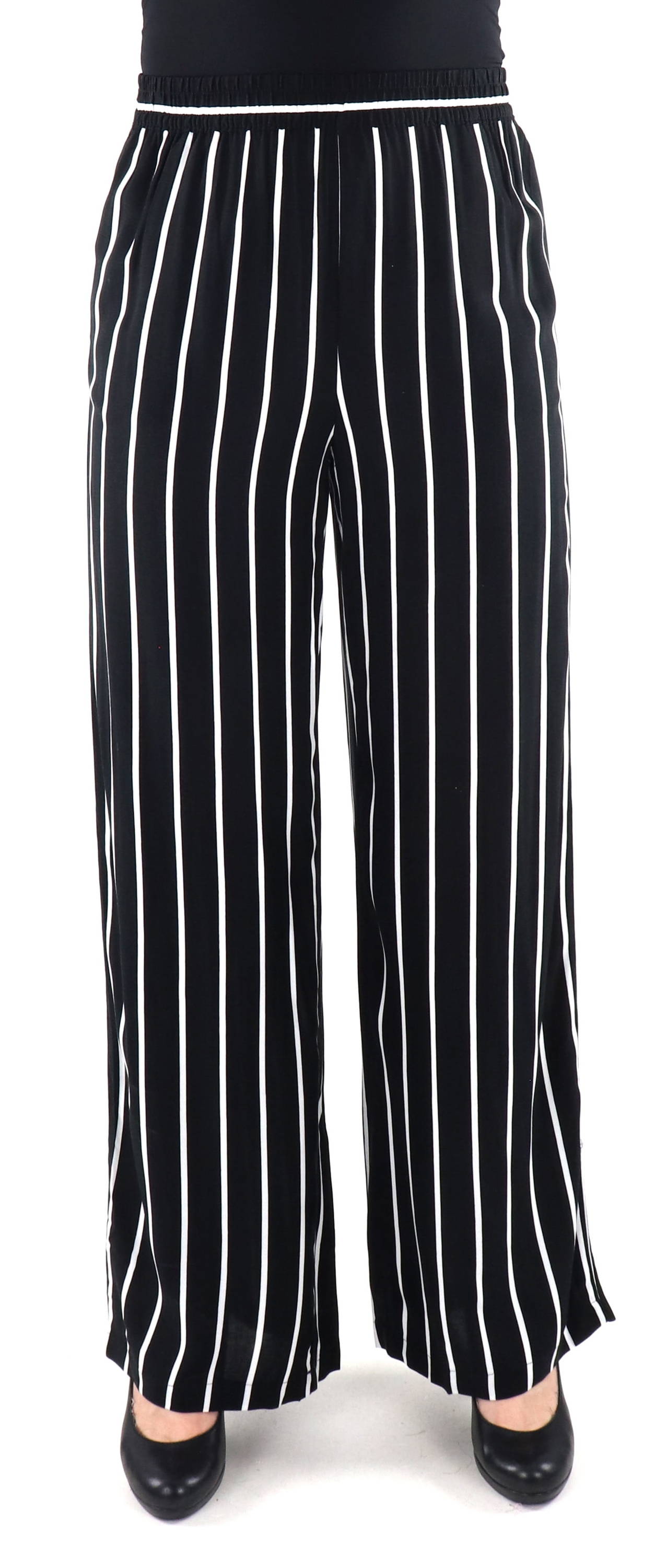 Wide-leg pants with striped pattern.