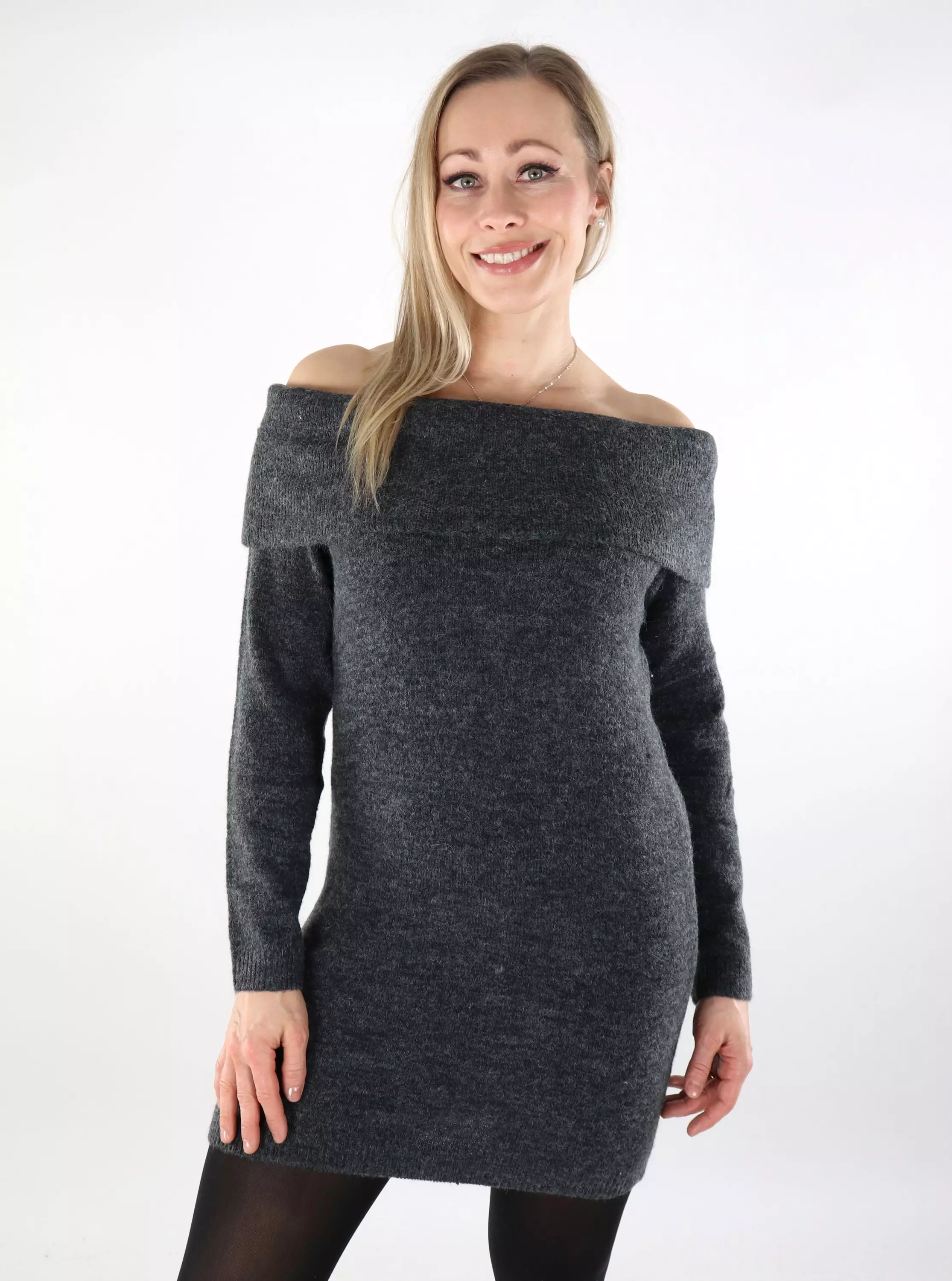 JJXX off shoulder knitted dress dark grey