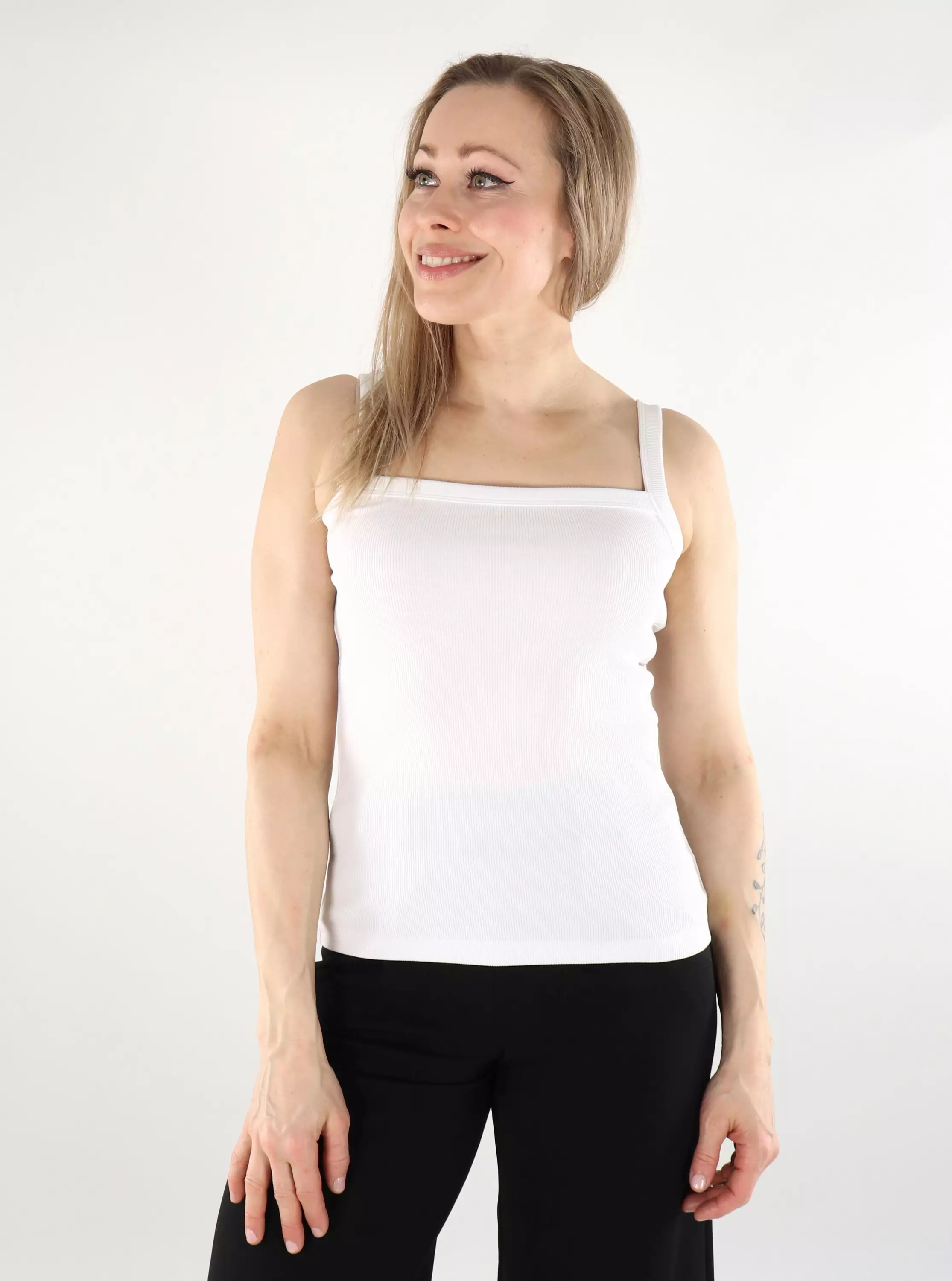 A slightly cropped top made of soft rib fabric. The stylish square neckline adds an edge to an otherwise classic and simple top!