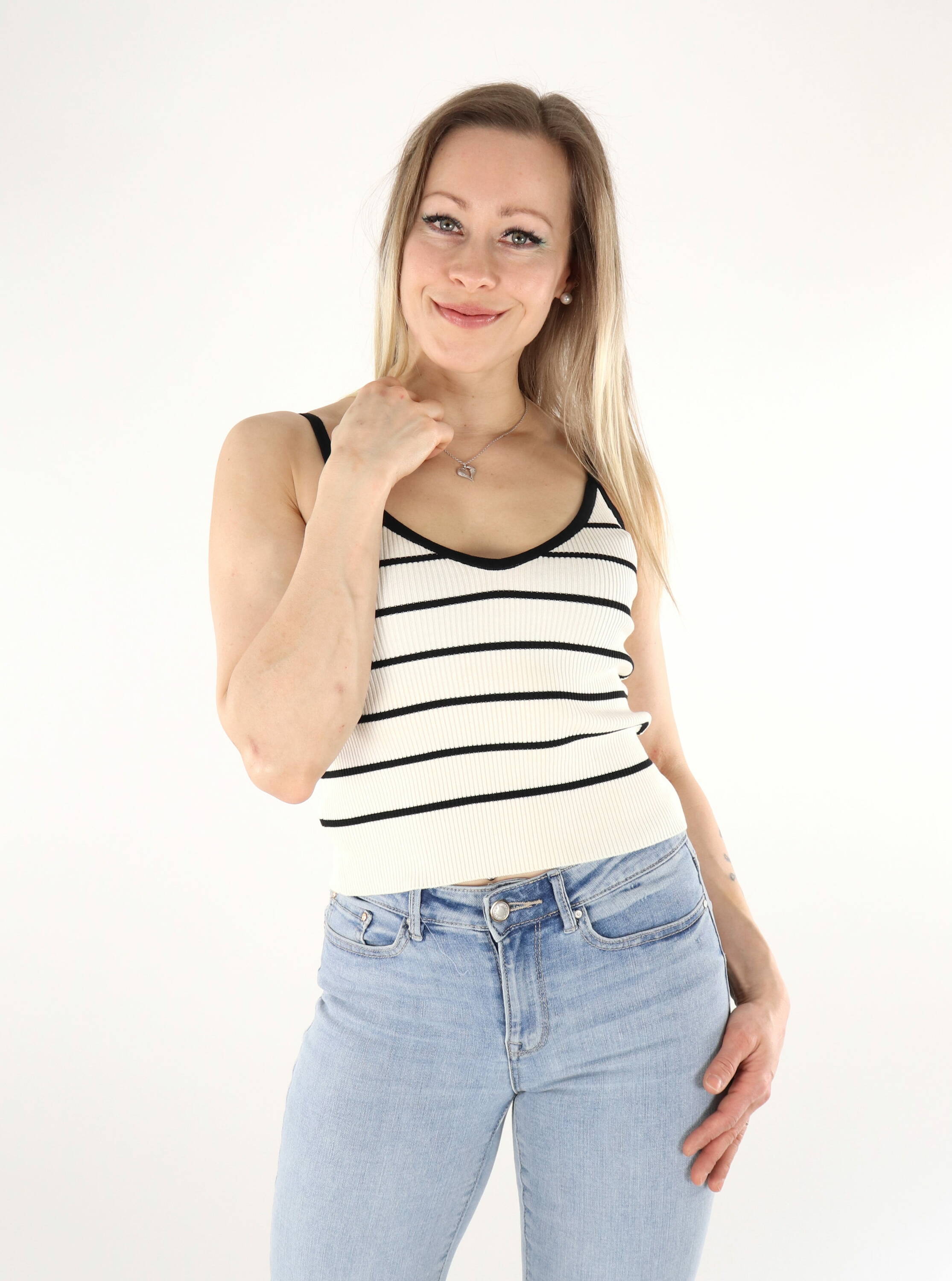 Striped knit top with string straps.