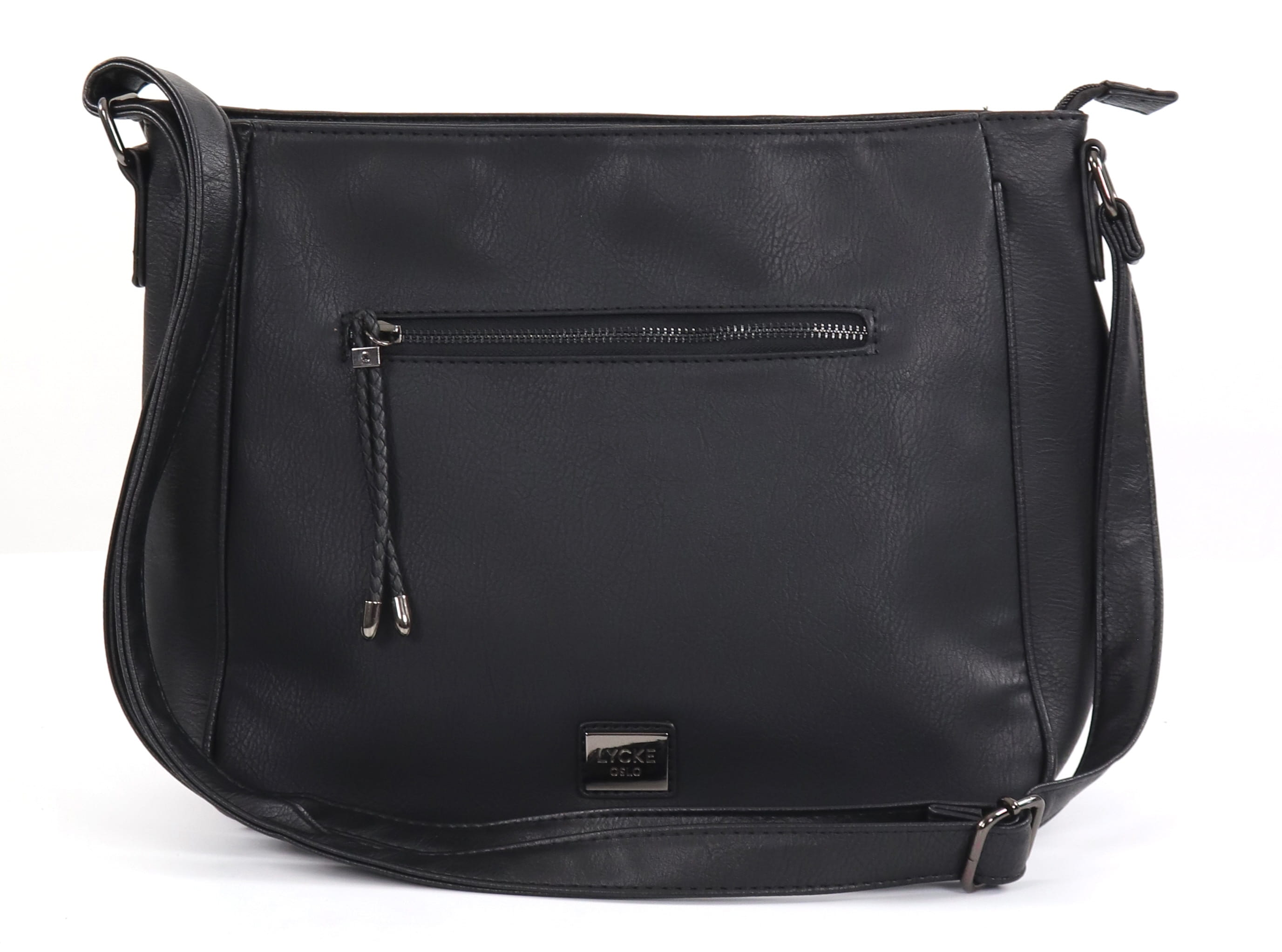 Synthetic material shoulder bag with adjustable shoulder strap.