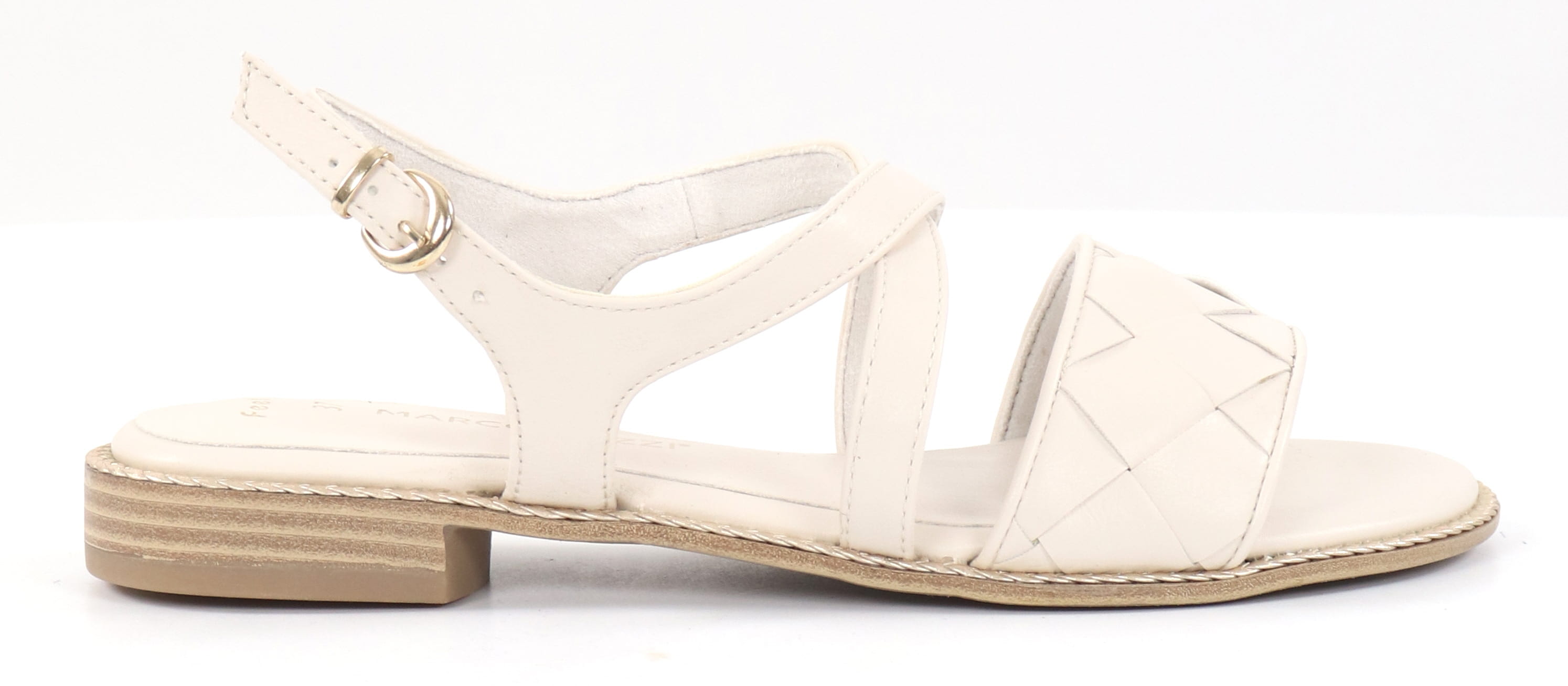 Synthetic material sandals with low heels, buckle fastening and braided detail.