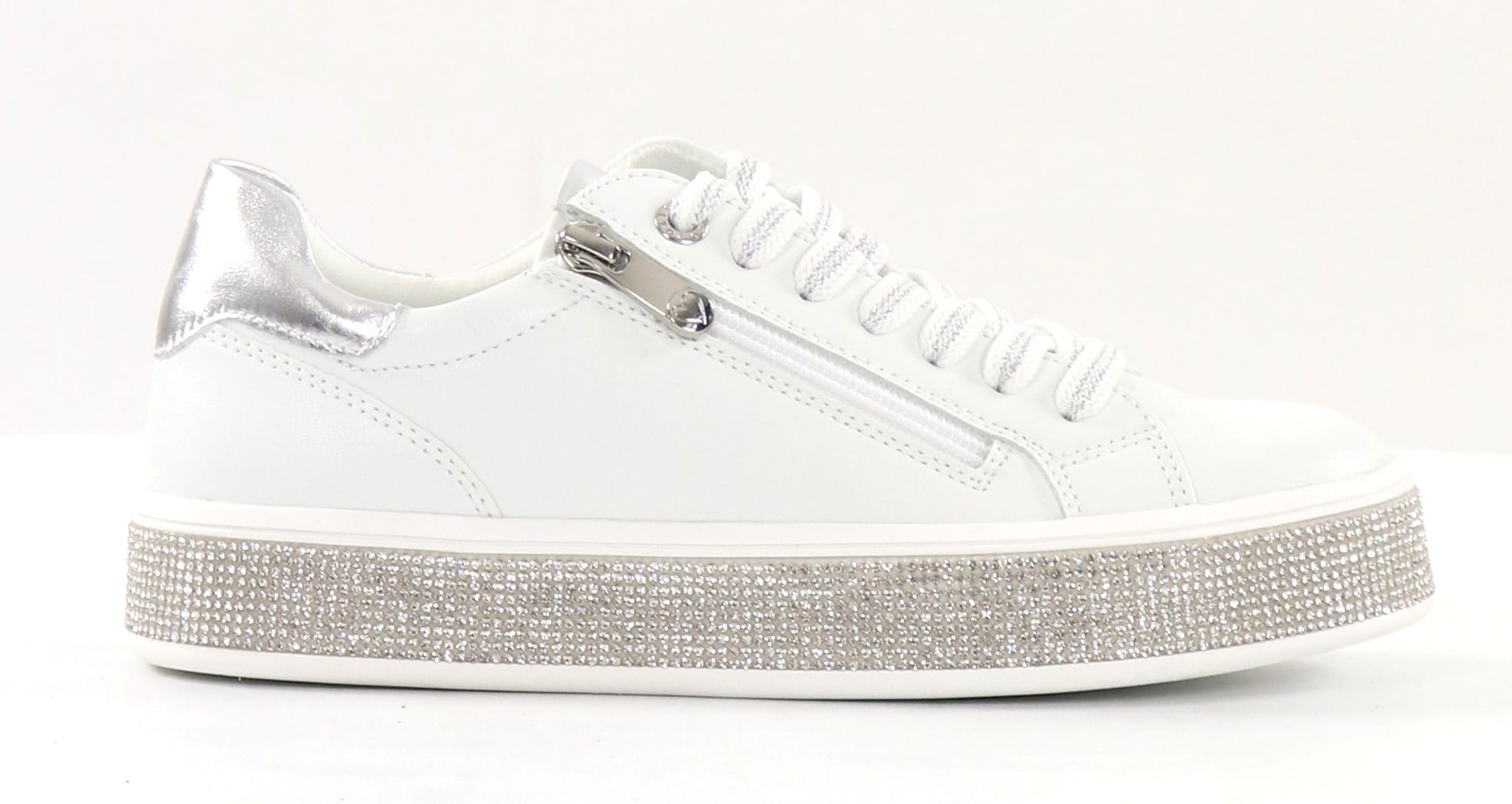Vegan sneakers with a spectacular glitter on the side of the sole.
