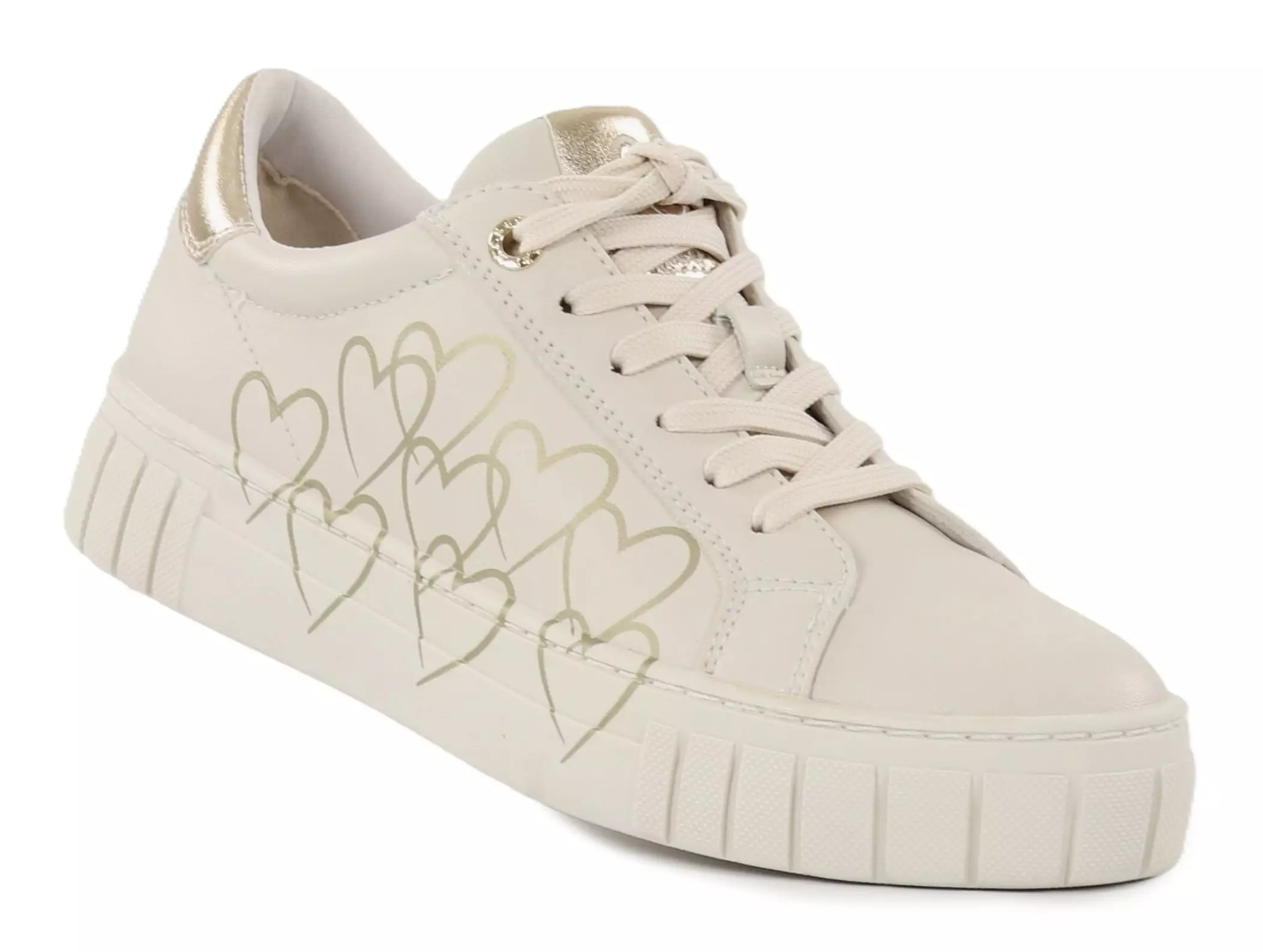 Stylish and comfortable beige sneakers from Marco Tozzi charm with their cute heart pattern. Easy to combine with jeans and skirts!