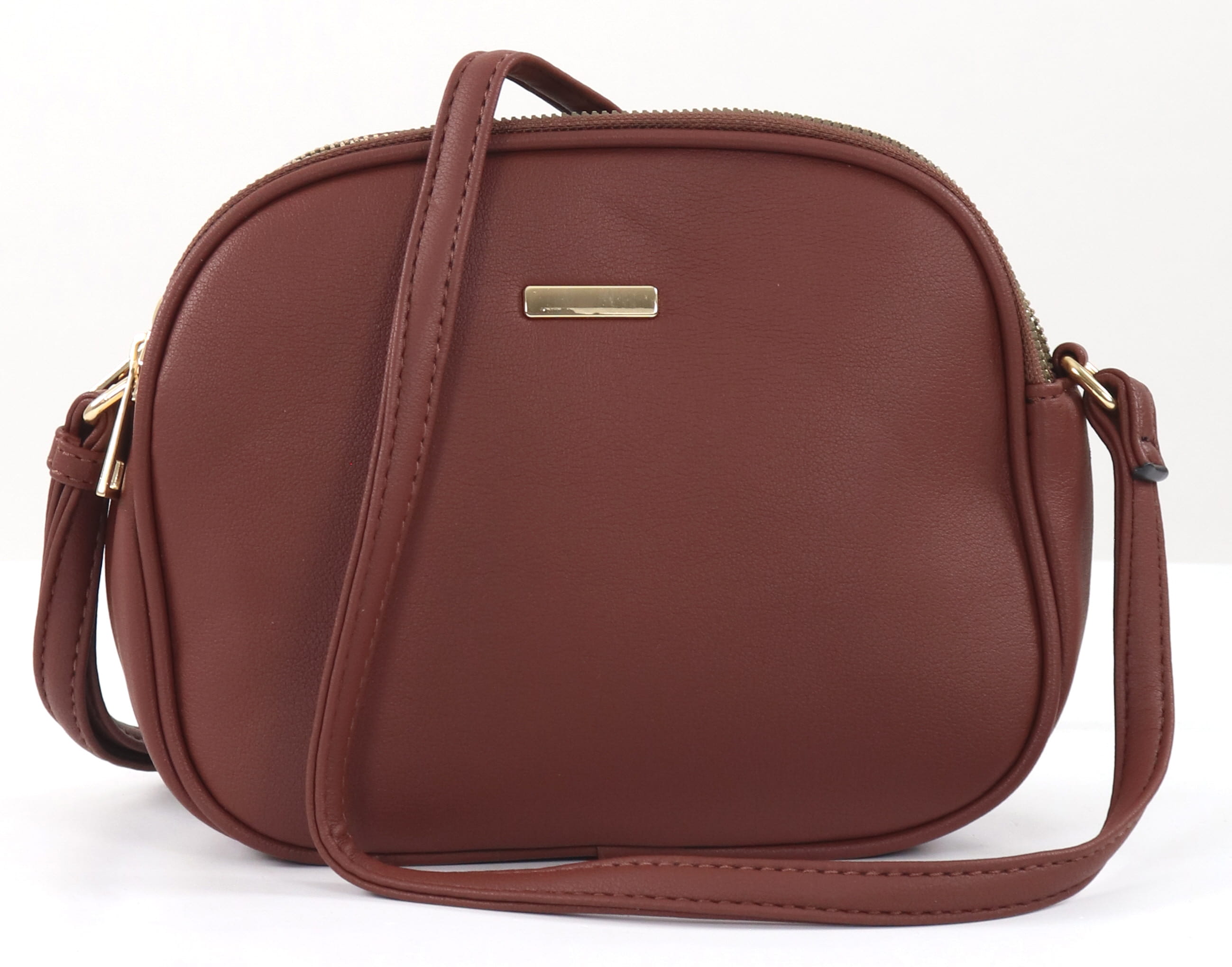 Artificial material small shoulder bag with adjustable shoulder strap.