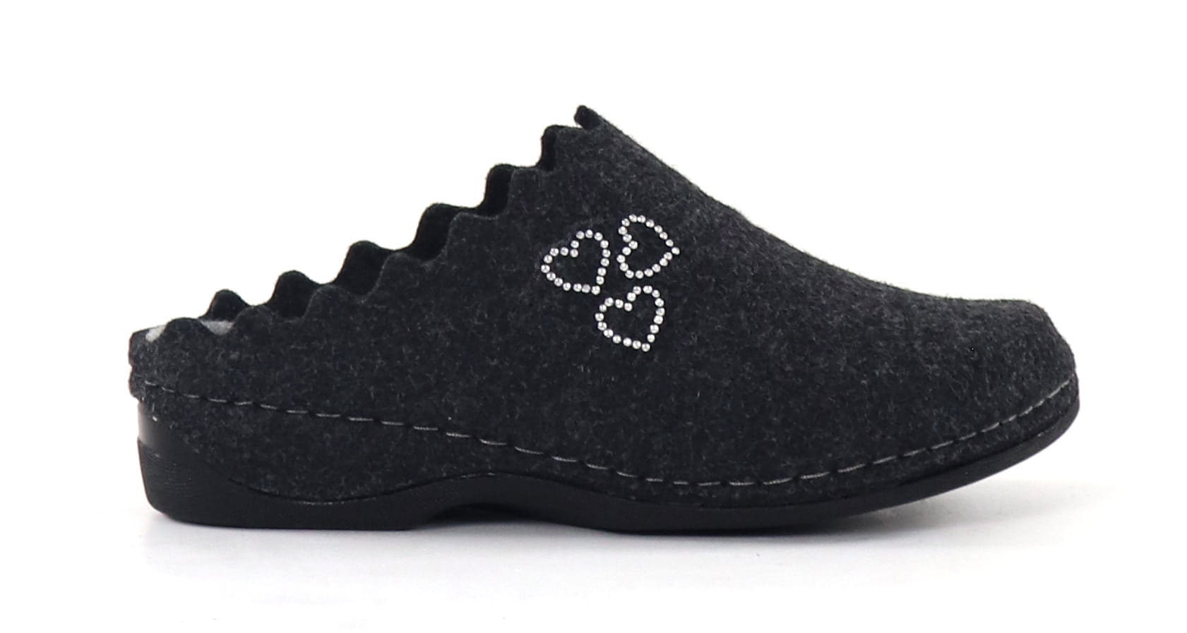 Women's slippers with beautiful rhinestone hearts.