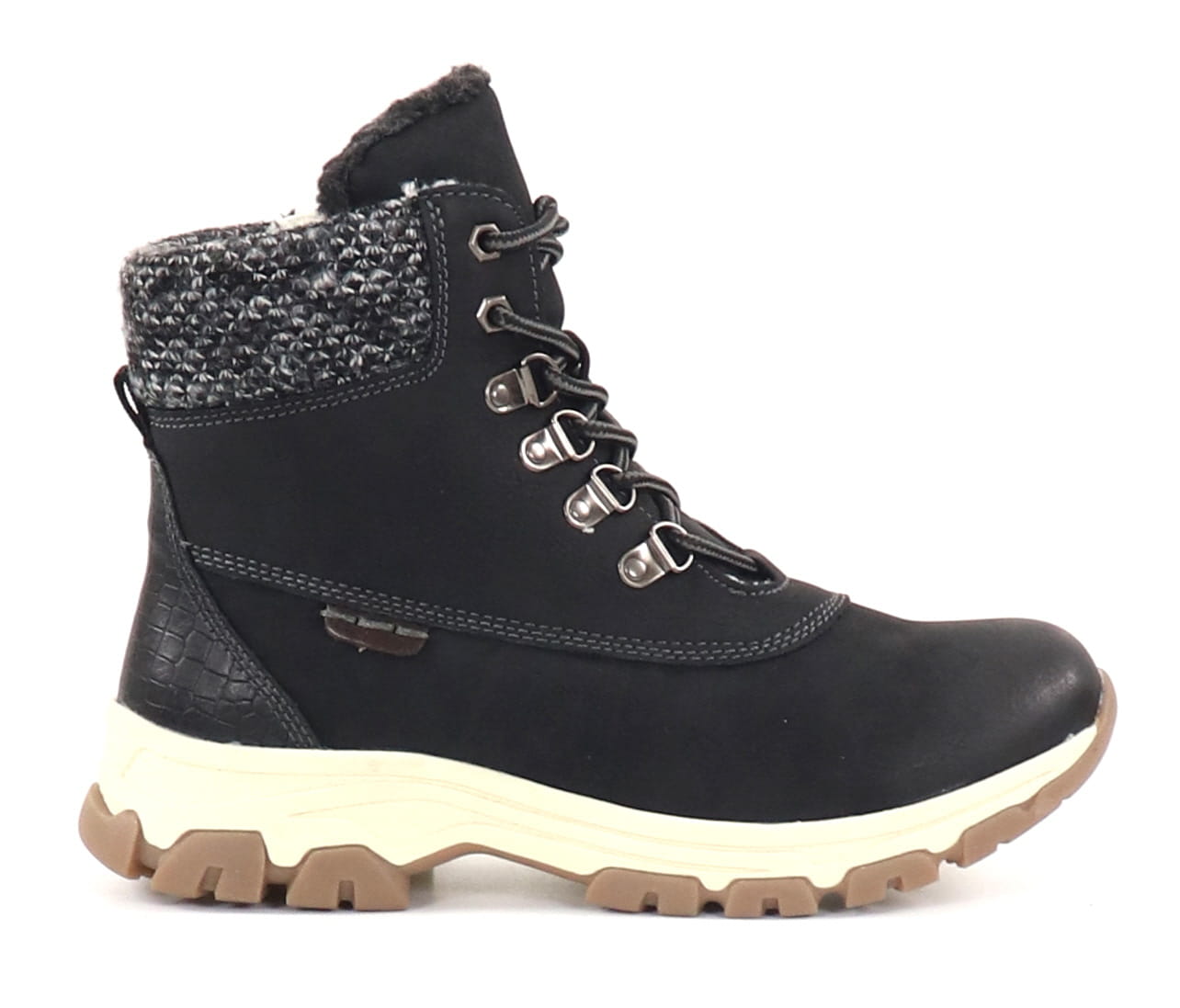 Water-resistant ankle boots with warm linings, laces and zipper.