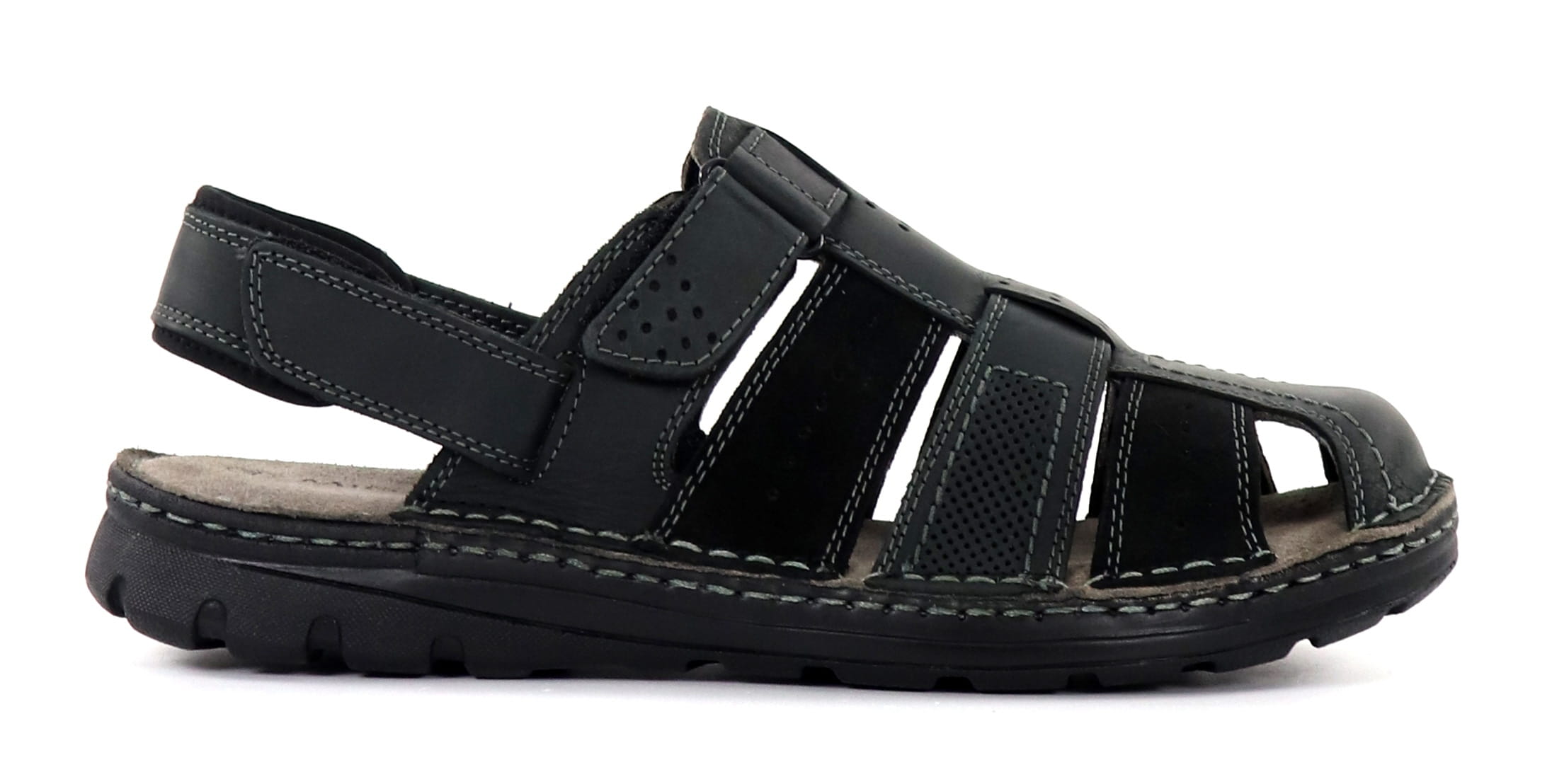 Men's genuine leather sandals with three Velcro adjustable straps.